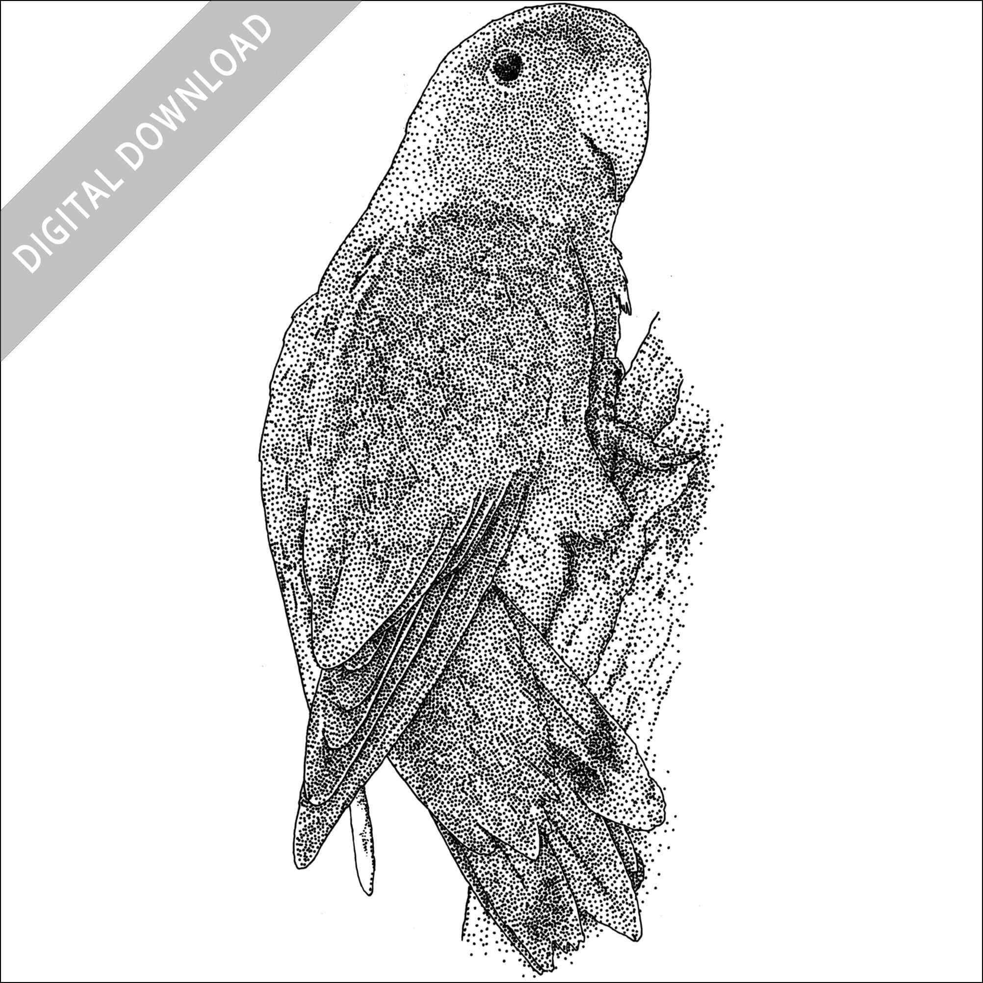 Stock art illustration of a Peach-Faced Lovebird (Agapornis roseicollis.)Â The illustration is available in black and white or color for immediate download.