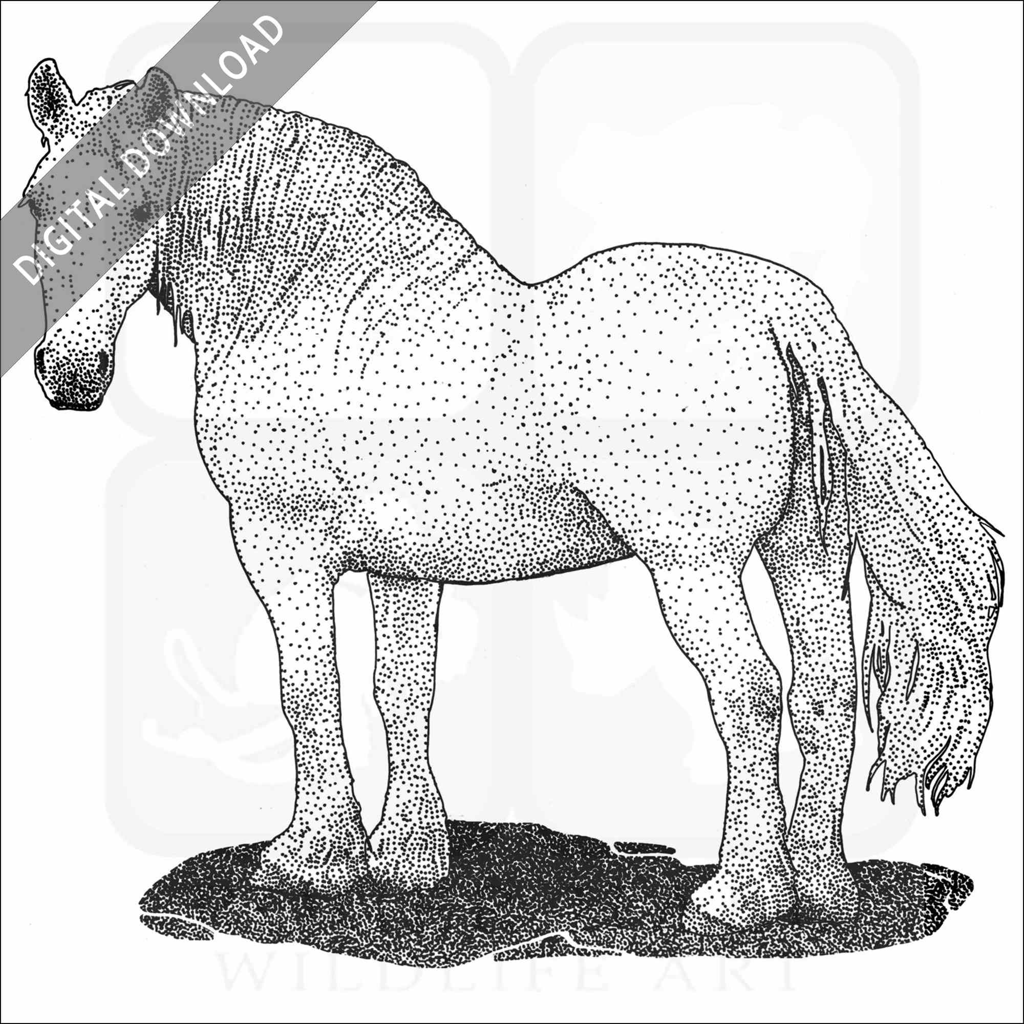Stock art illustration of a Percheron Horse (Equus Ferus.)Â The illustration is available in black and white or color for immediate download.