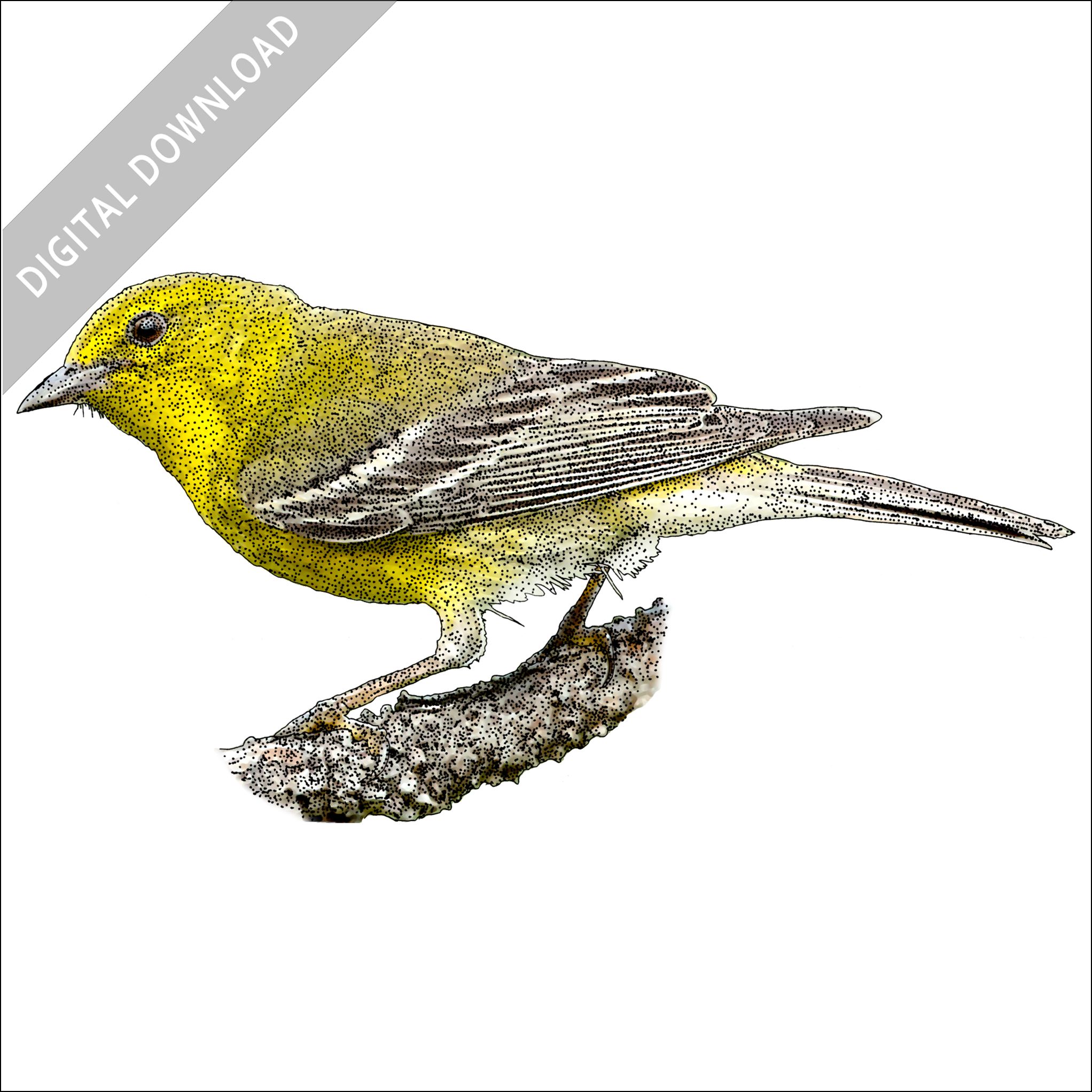 Stock art illustration of a Pine Warbler (Setophaga pinus.)Â Â The illustration is available in black and white or color for immediate download.