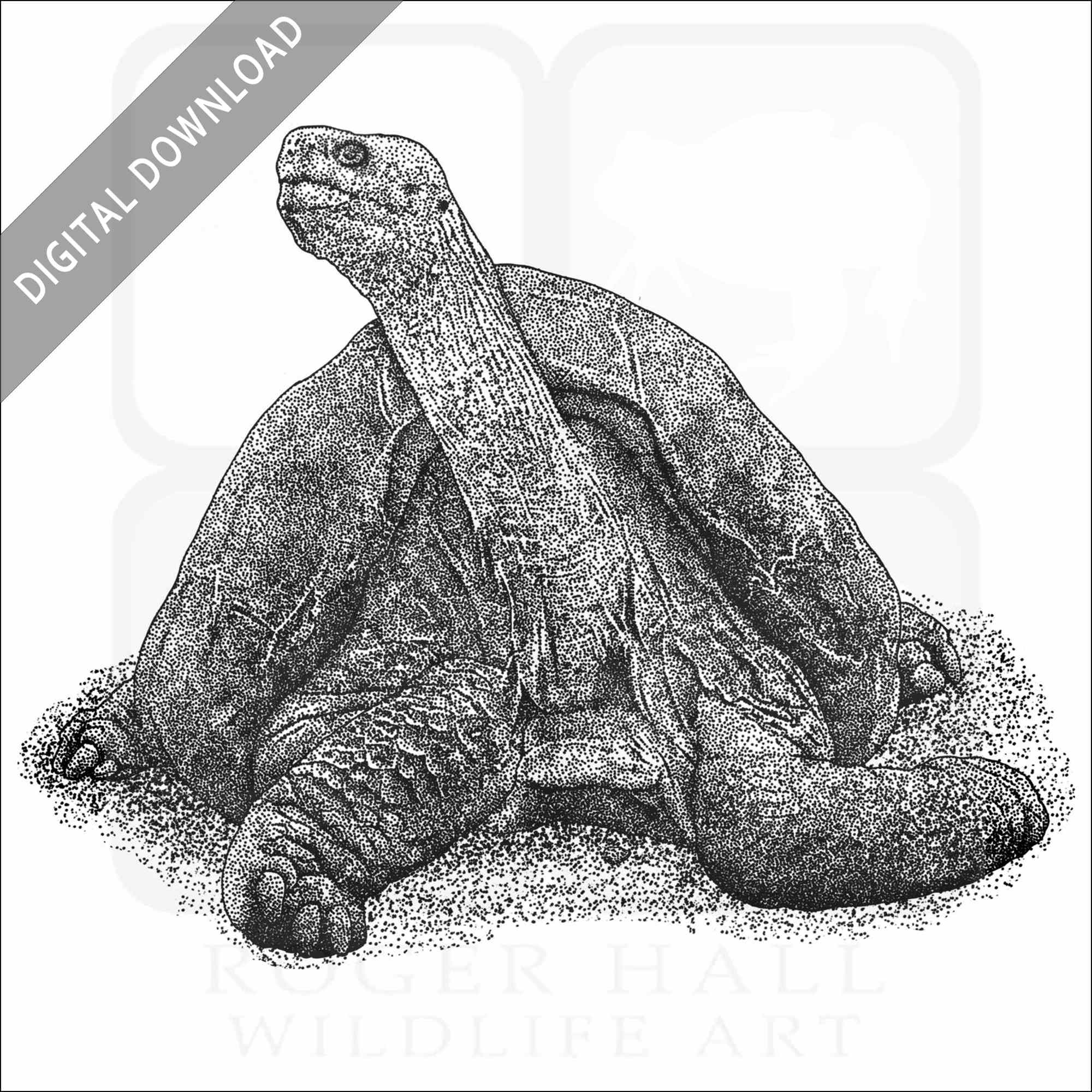 Stock art illustration of a Pinta Island Tortoise (Chelonoidis nigra abingdonii.) The illustration is available in black and white or color for immediate download.