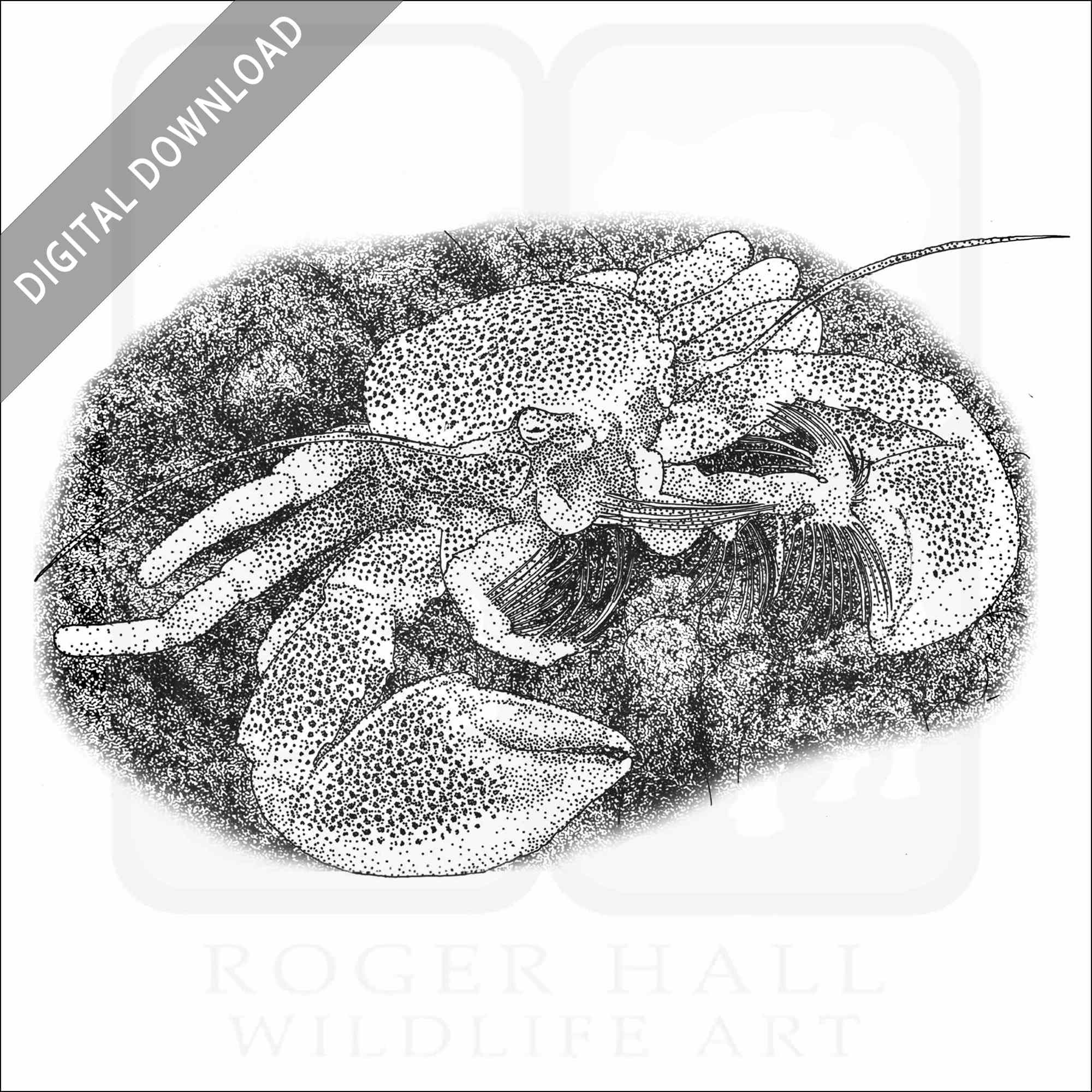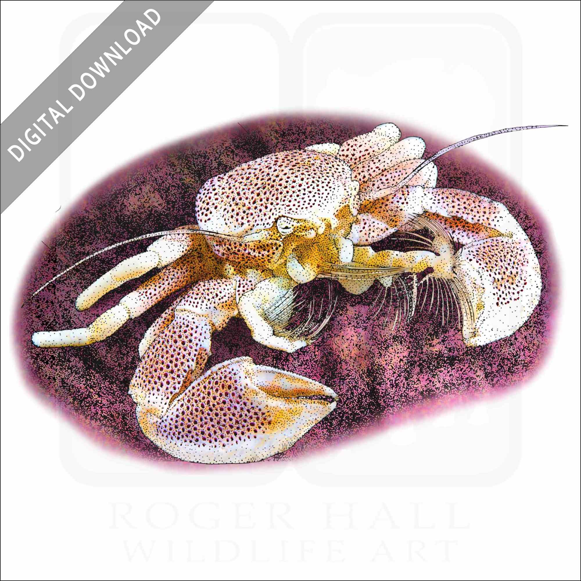 Stock art illustration of a Porcelain Anemone Crab (Neopetrolisthes ohshimai.)Â The illustration is available in black and white or color for immediate download.
