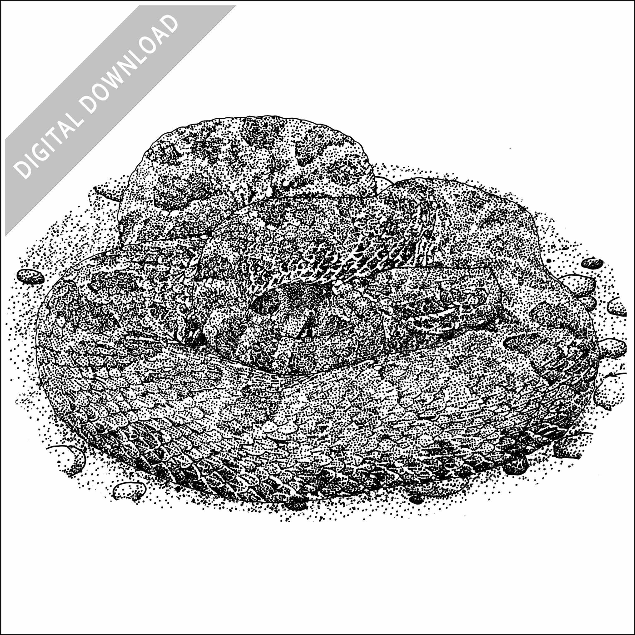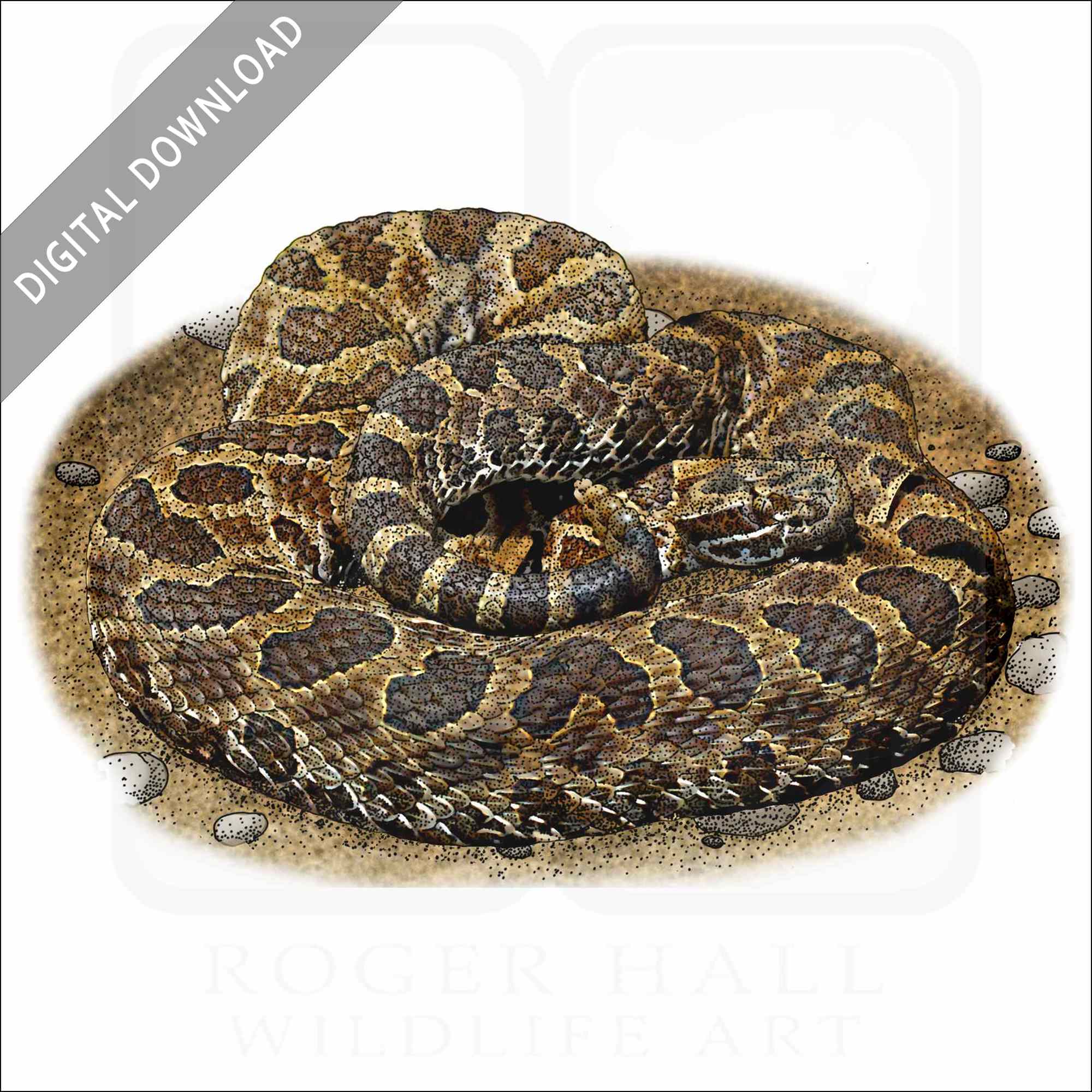 Stock art illustration of a Prairie Massasauga (Sistrurus catenatus.)Â The illustration is available in black and white or color for immediate download.