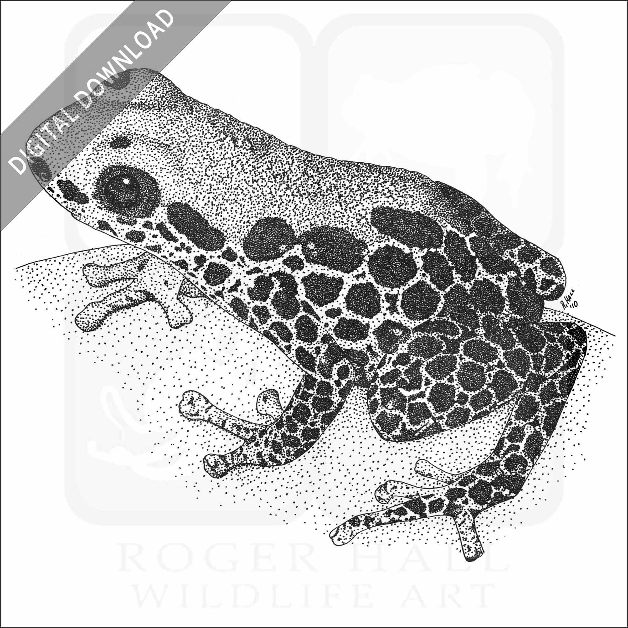 Stock art illustration of a Red-Backed Poison Dart Frog (Ranitomeya reticulata.)Â The illustration is available in black and white or color for immediate download. for immediate download.