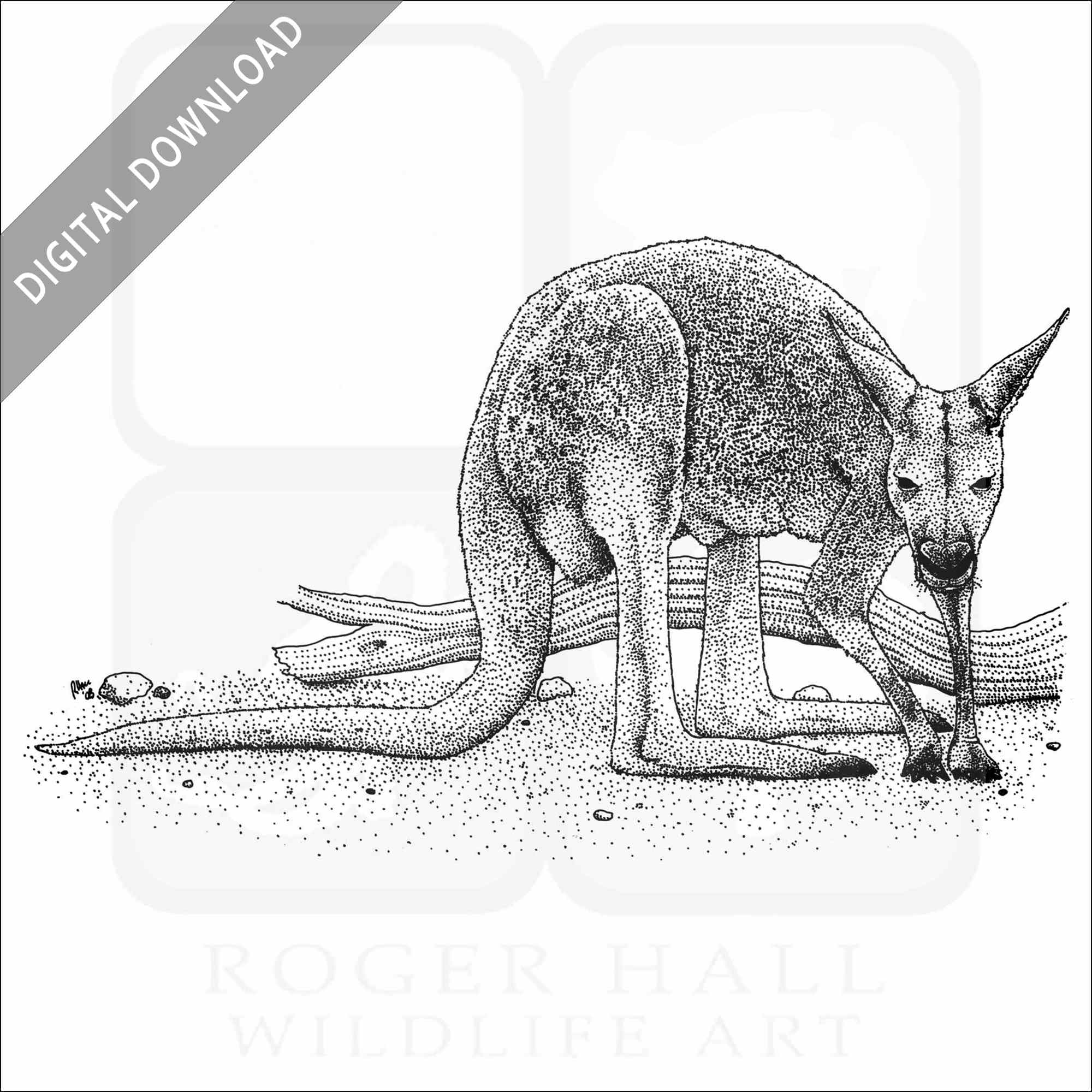 Stock art illustration of a Red Kangaroo (Macropus rufus.) The illustration is available in black and white or color for immediate download.