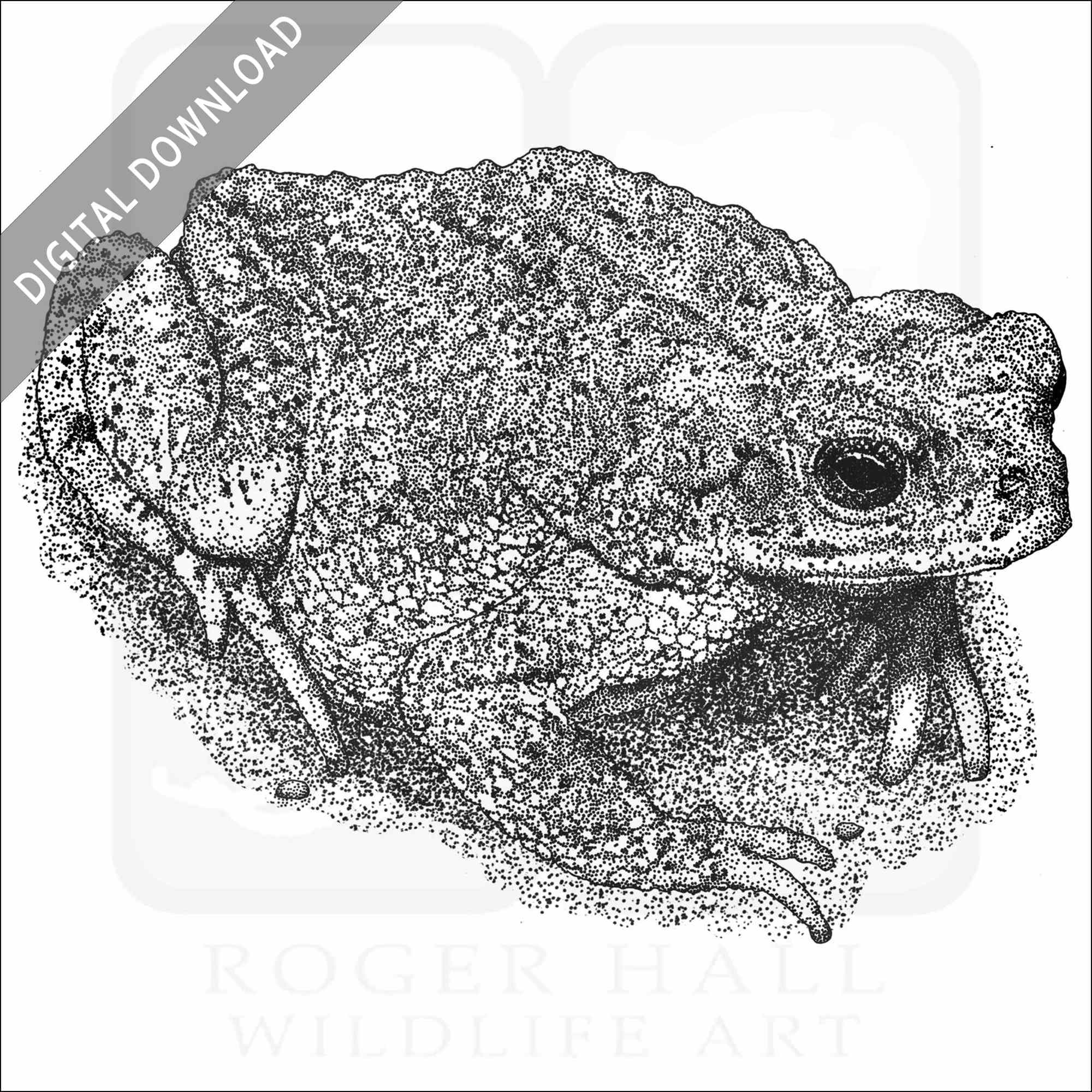 Stock art illustration of a Red-Spotted Toad (Anaxyrus punctatus, formerly Bufo punctatus.) The illustration is available in black and white or color for immediate download.