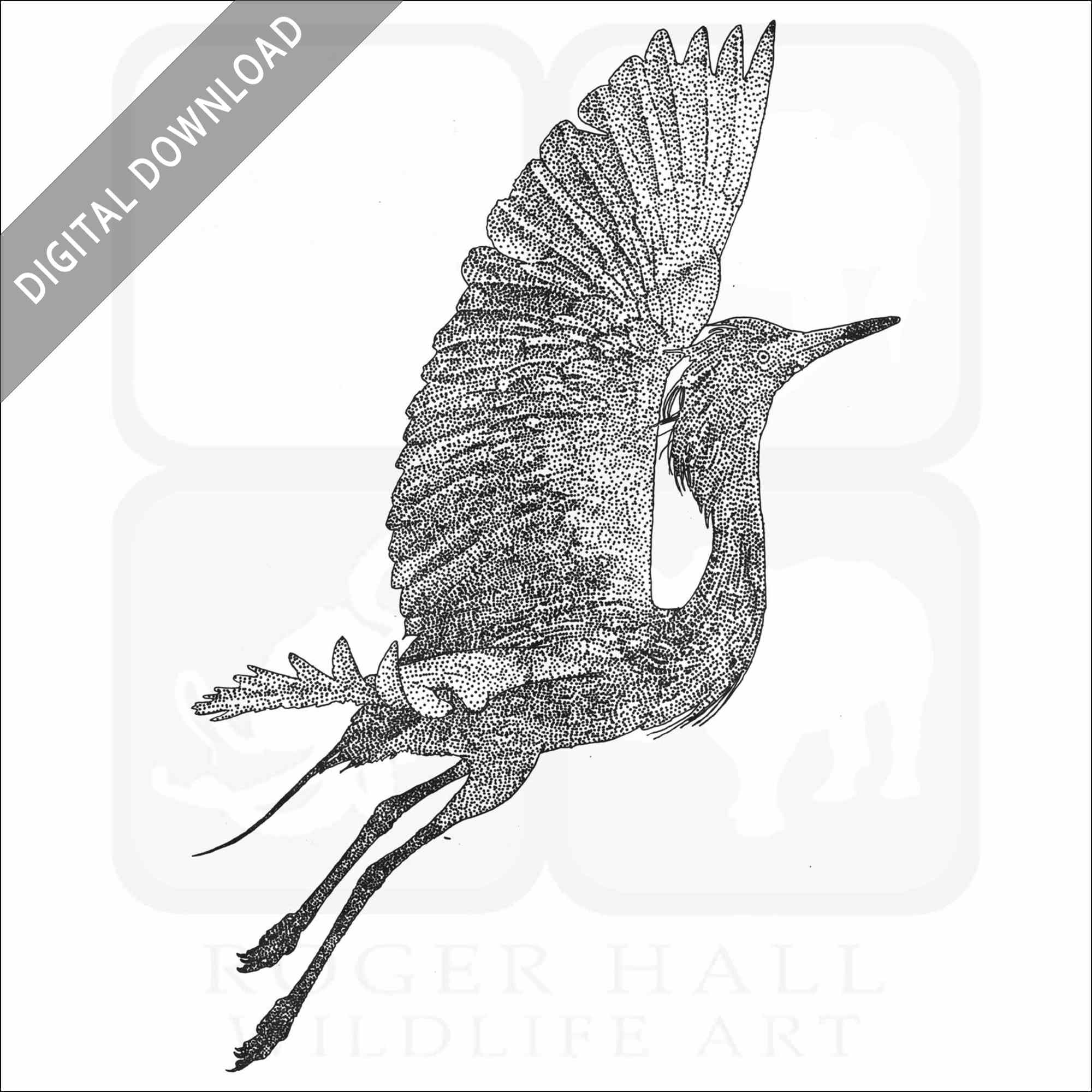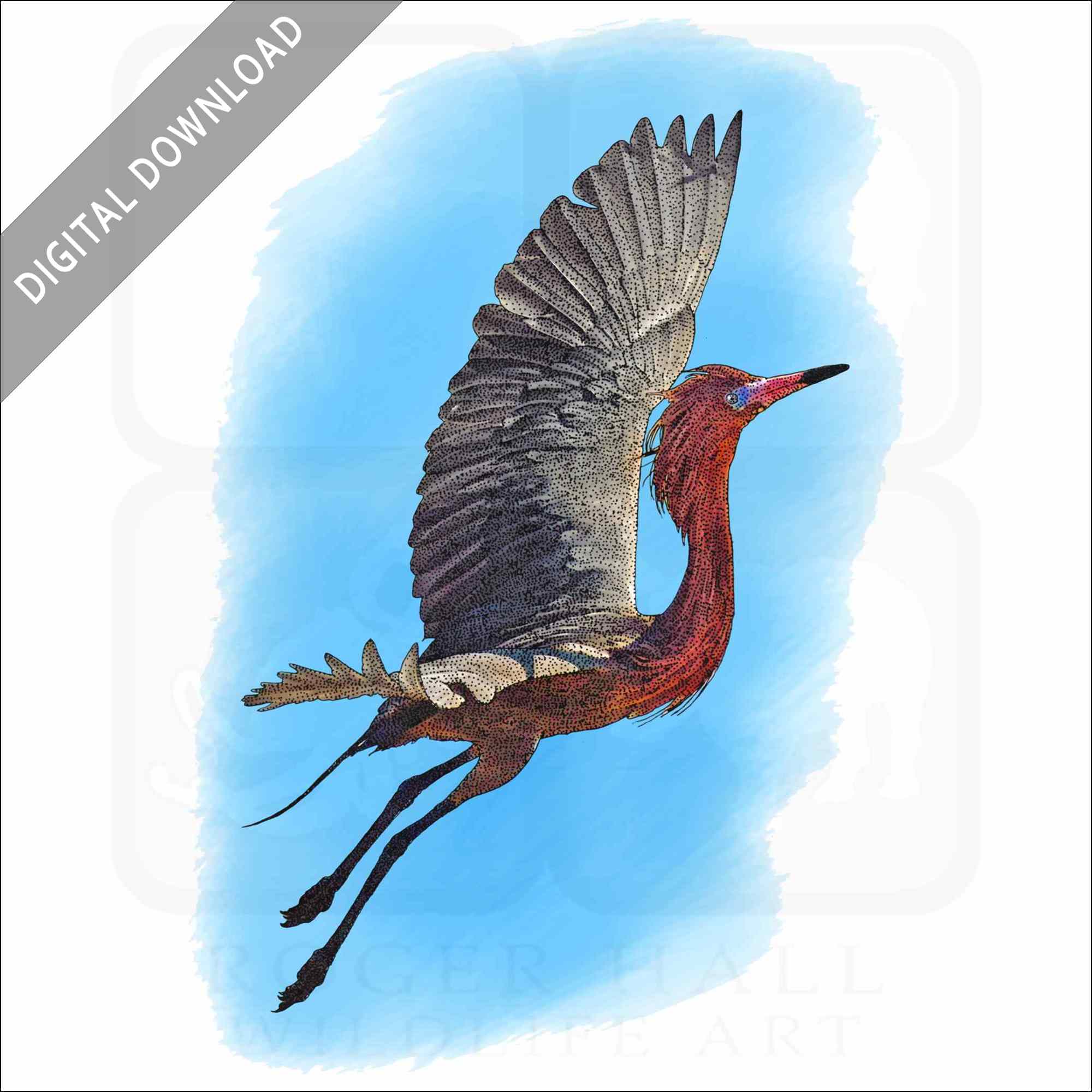 Stock art illustration of a Reddish Egret (Egretta rufescens.)Â The illustration is available in black and white or color for immediate download.