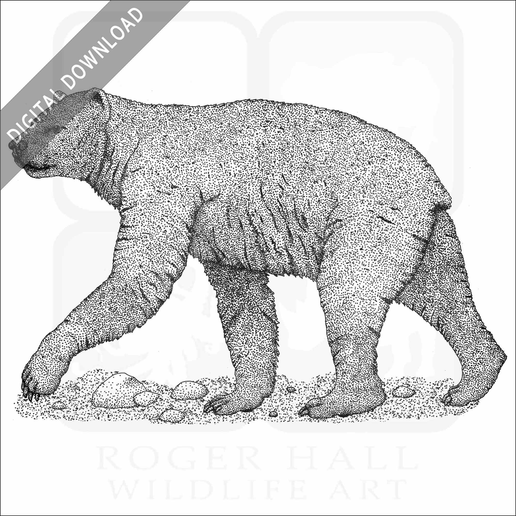Stock art illustration of a Short-Faced Bear (Arctodus simus.) The illustration is available in black and white or color for immediate download.