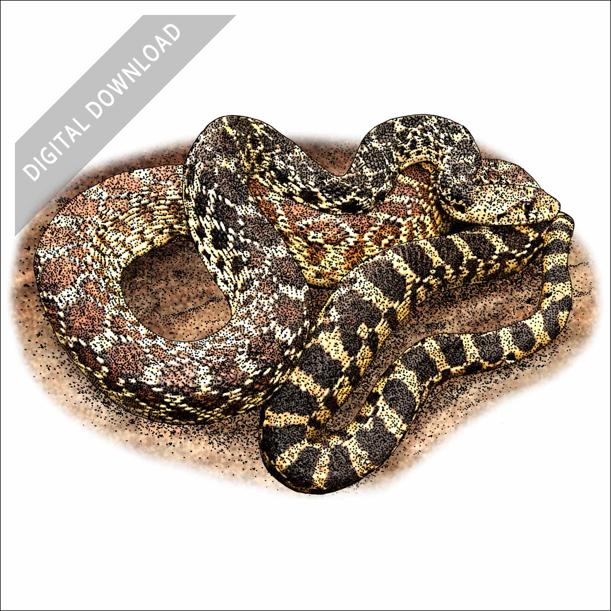 Stock art illustration of a Sonoran Gopher Snake (Pituophis catenifer affinis.)Â The illustration is available in black and white or color for immediate download.
