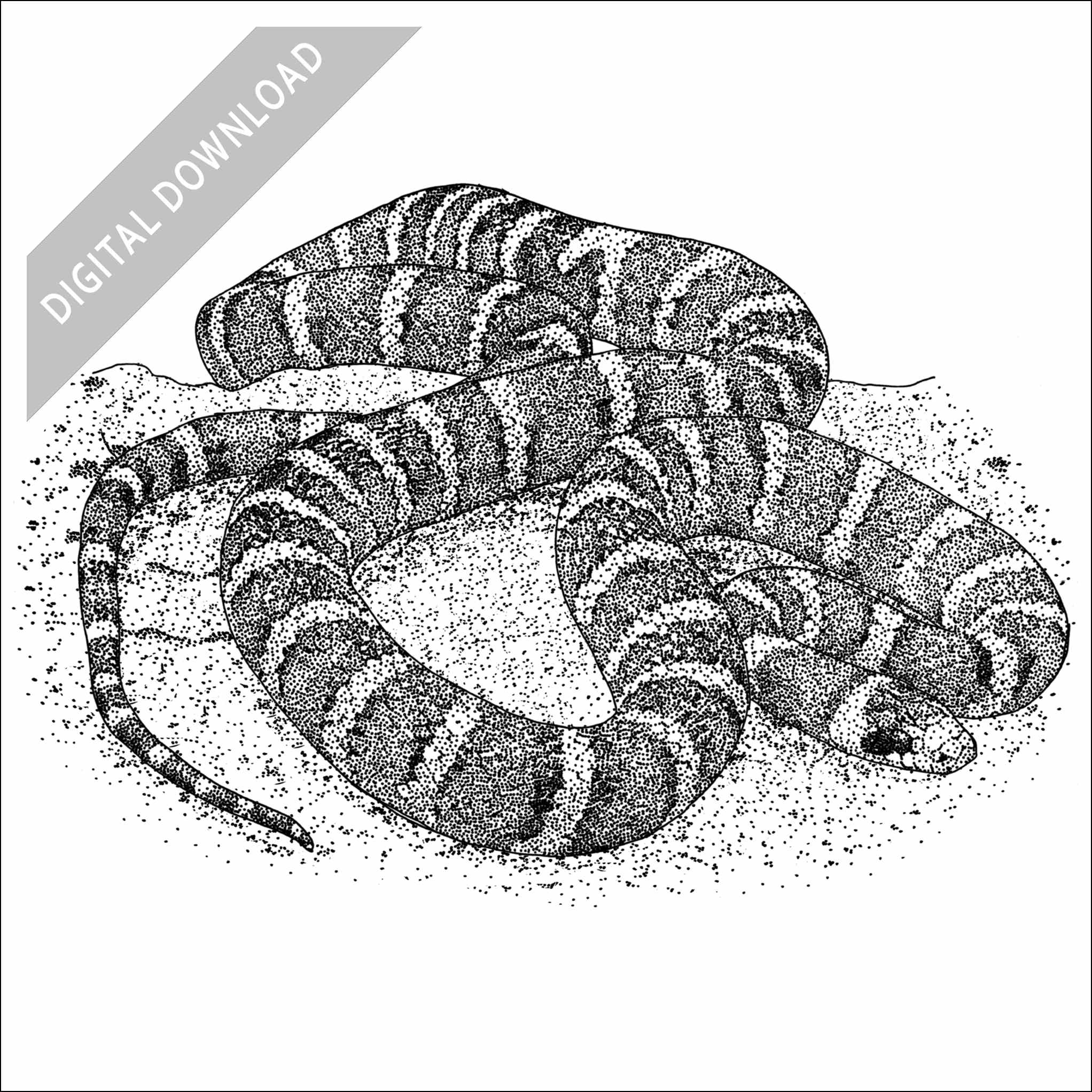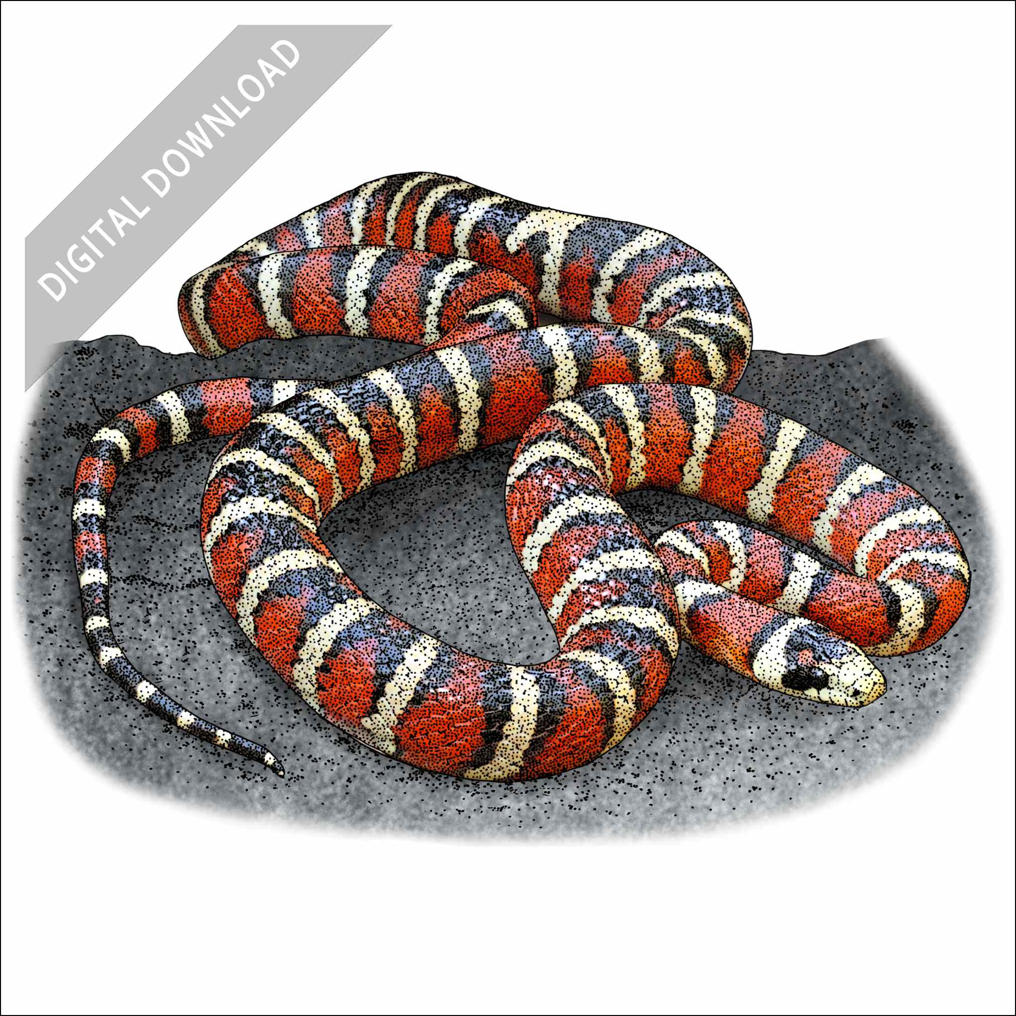 Stock art illustration of a Sonoran Mountain Kingsnake (Lampropeltis pyromelana.)Â The illustration is available in black and white or color for immediate download.