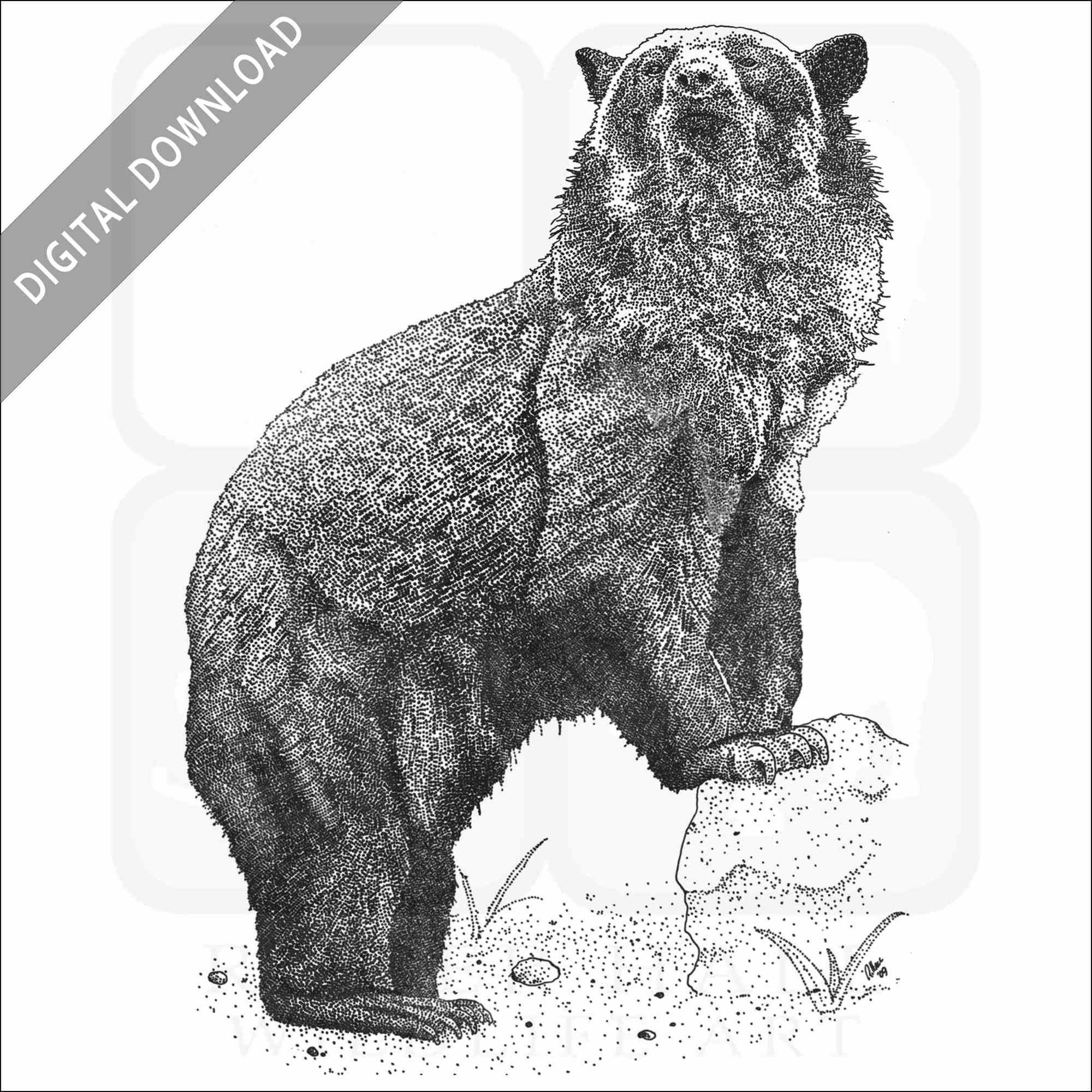 Stock art illustration of a Spectacled Bear (Tremarctos ornatus.) The illustration is available in black and white or color for immediate download.