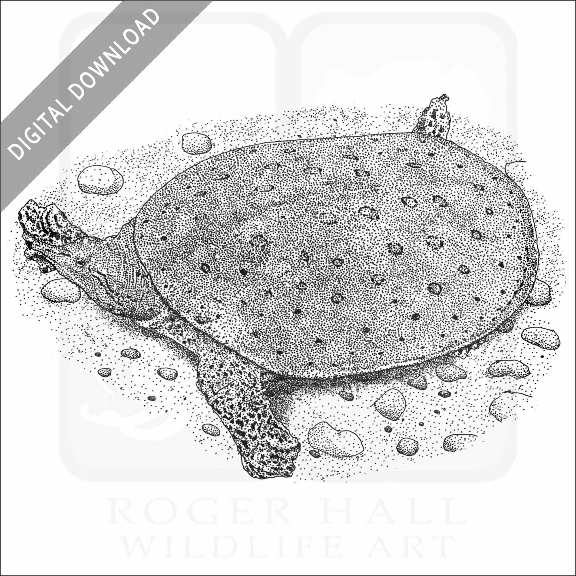 Stock art illustration of a Spiny Softshell Turtle (Apalone spinifera.)Â The illustration is available in black and white or color for immediate download.