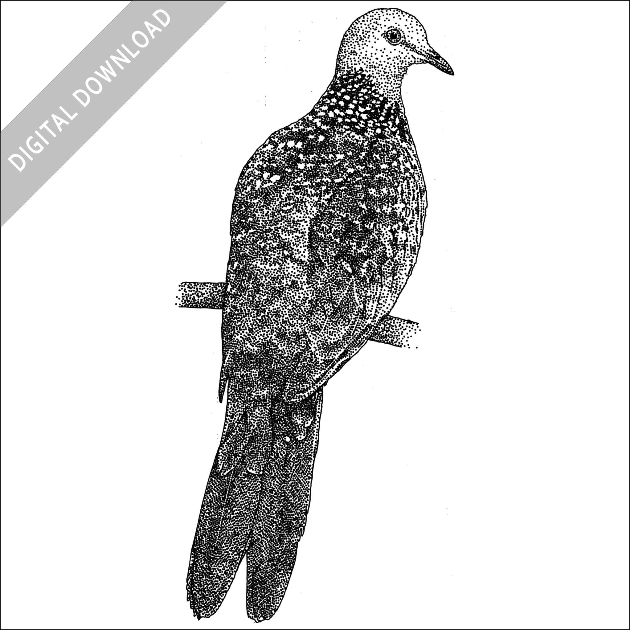Stock art illustration of a Spotted Dove (Spilopelia chinensis.)Â The illustration is available in black and white or color for immediate download.