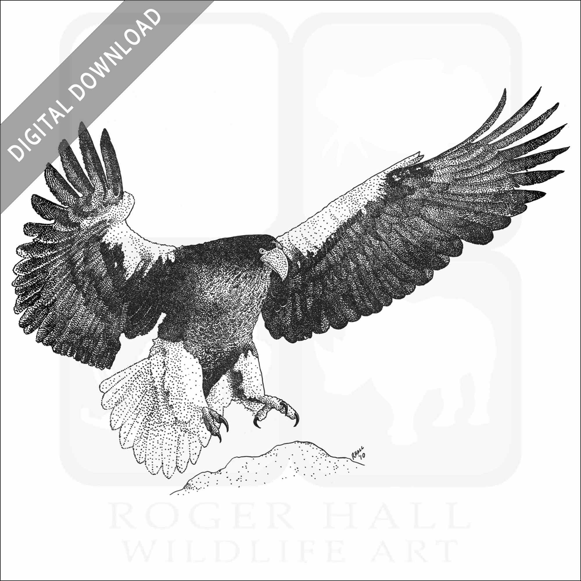 Stock art illustration of a Steller’s Sea Eagle (Haliaeetus pelagicus.)Â The illustration is available in black and white or color for immediate download.