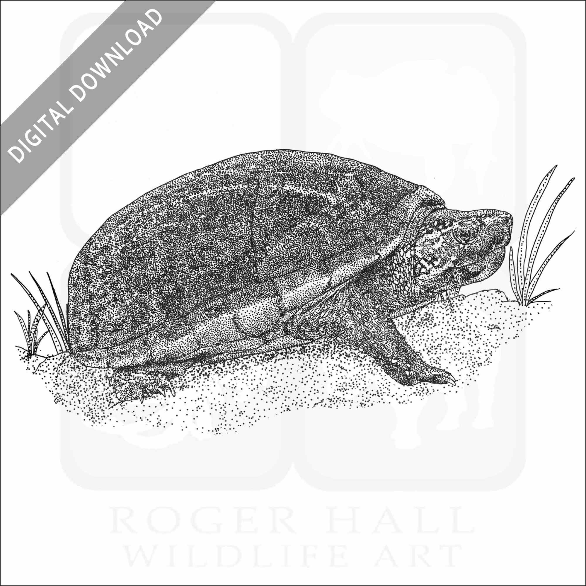 Stock art illustration of a Striped Mud Turtle (Kinosternon baurii.)Â The illustration is available in black and white or color for immediate download.