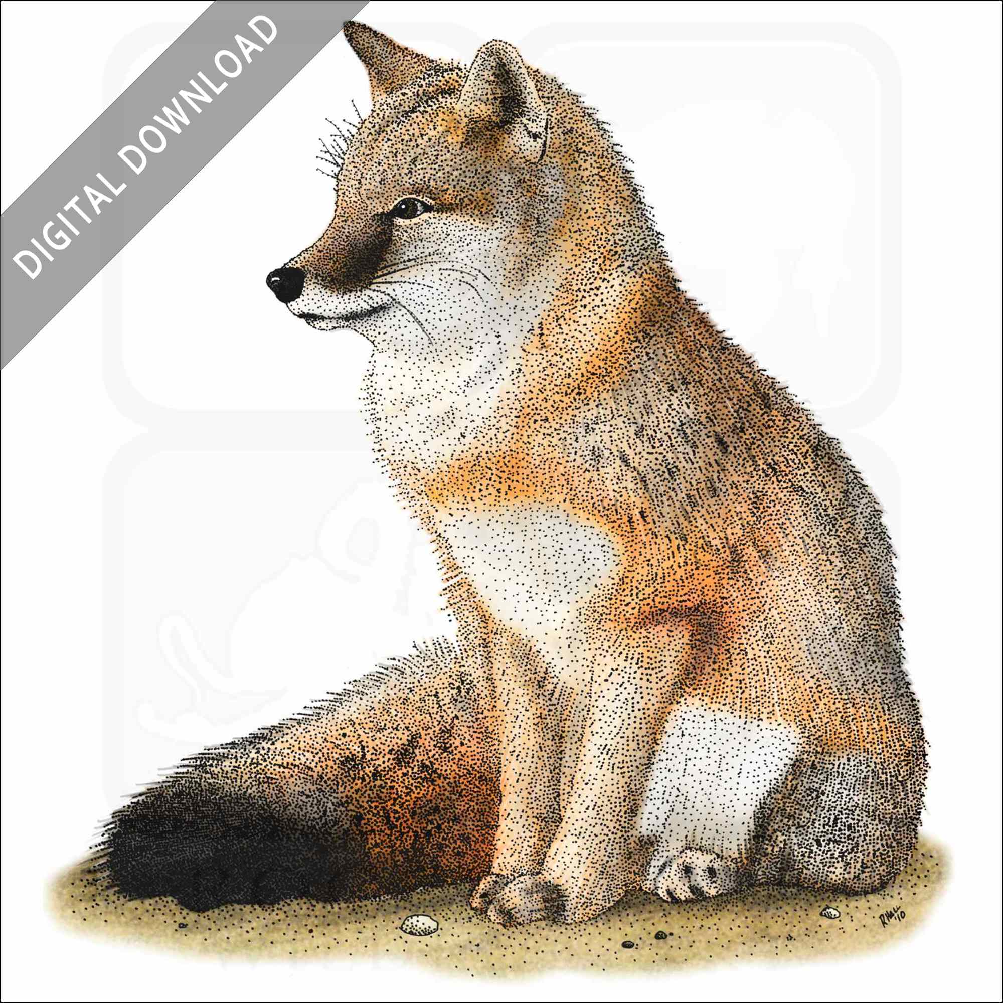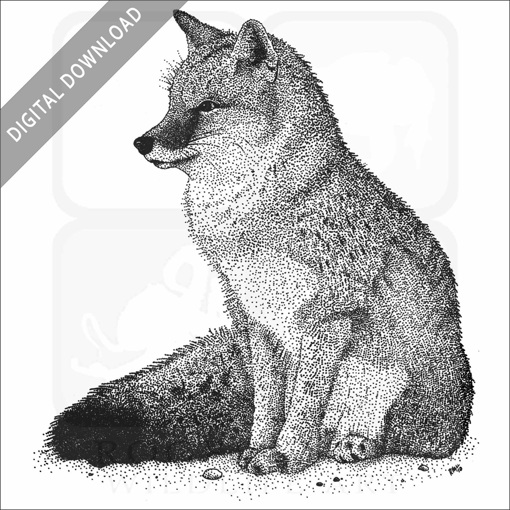 Stock art illustration of a Swift Fox (Vulpes velox.) The illustration is available in black and white or color for immediate download.