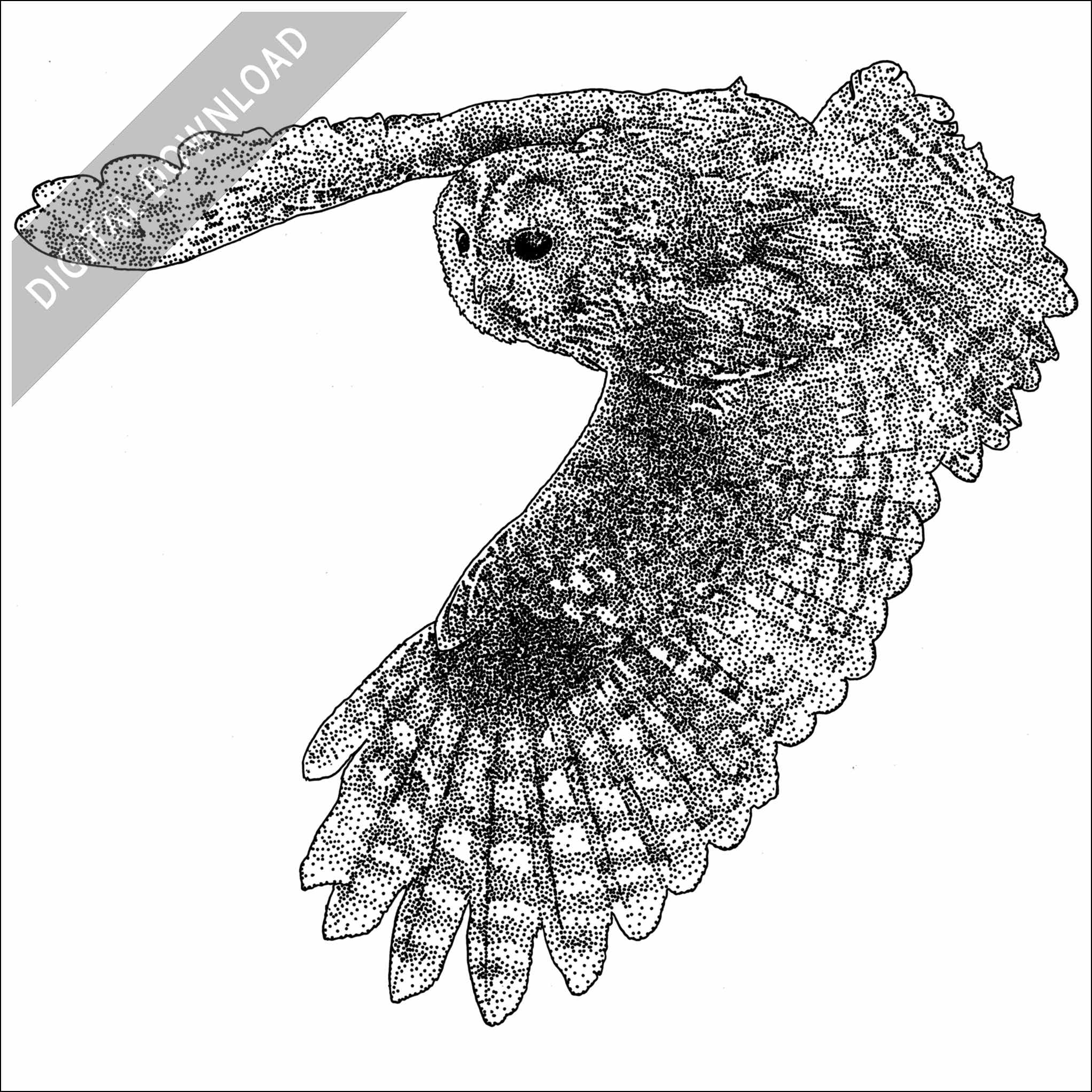 Stock art illustration of a Tawny Owl (Strix aluco.) The illustration is available in black and white or color for immediate download