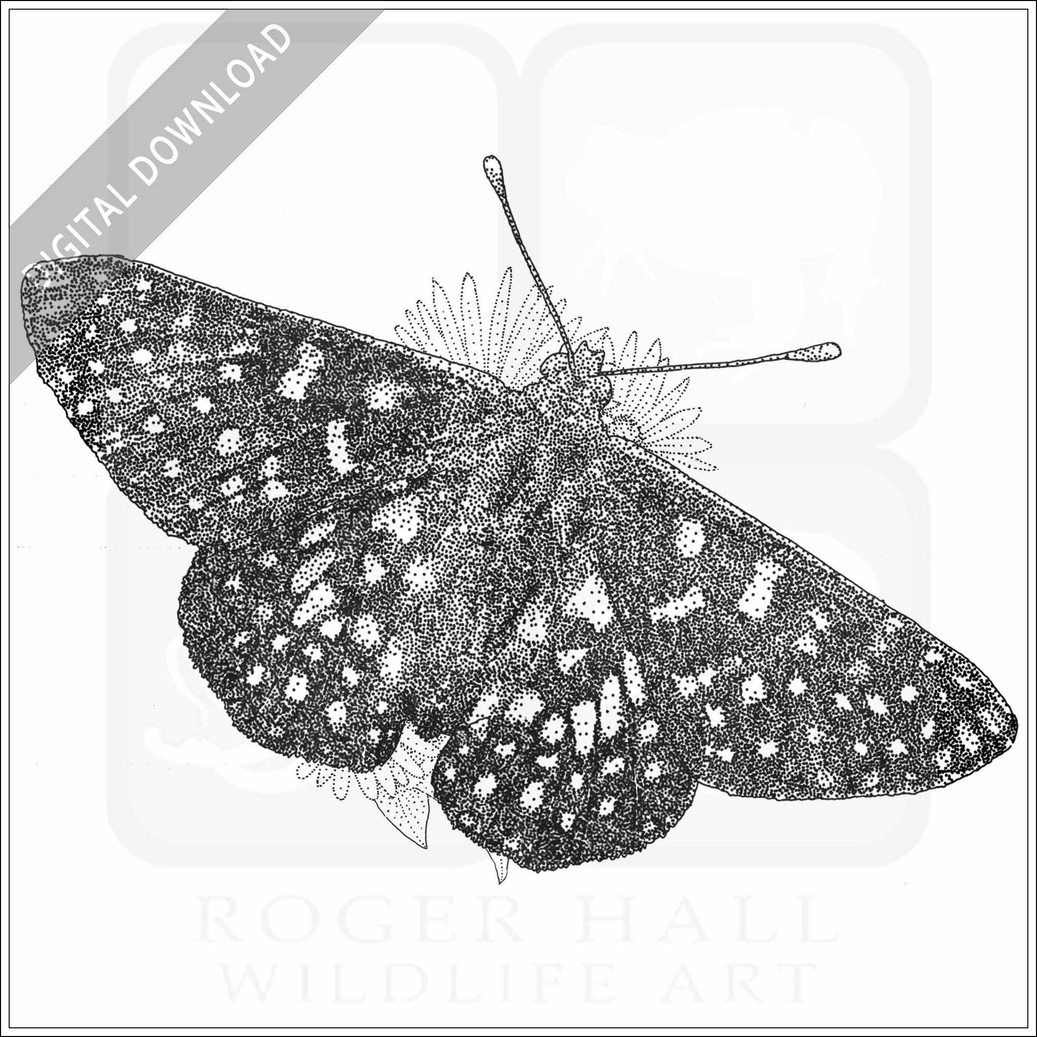 Stock art illustration of a Variable Checkerspot Butterfly (Euphydryas chalcedona.)Â The illustration is available in black and white or color for immediate download.
