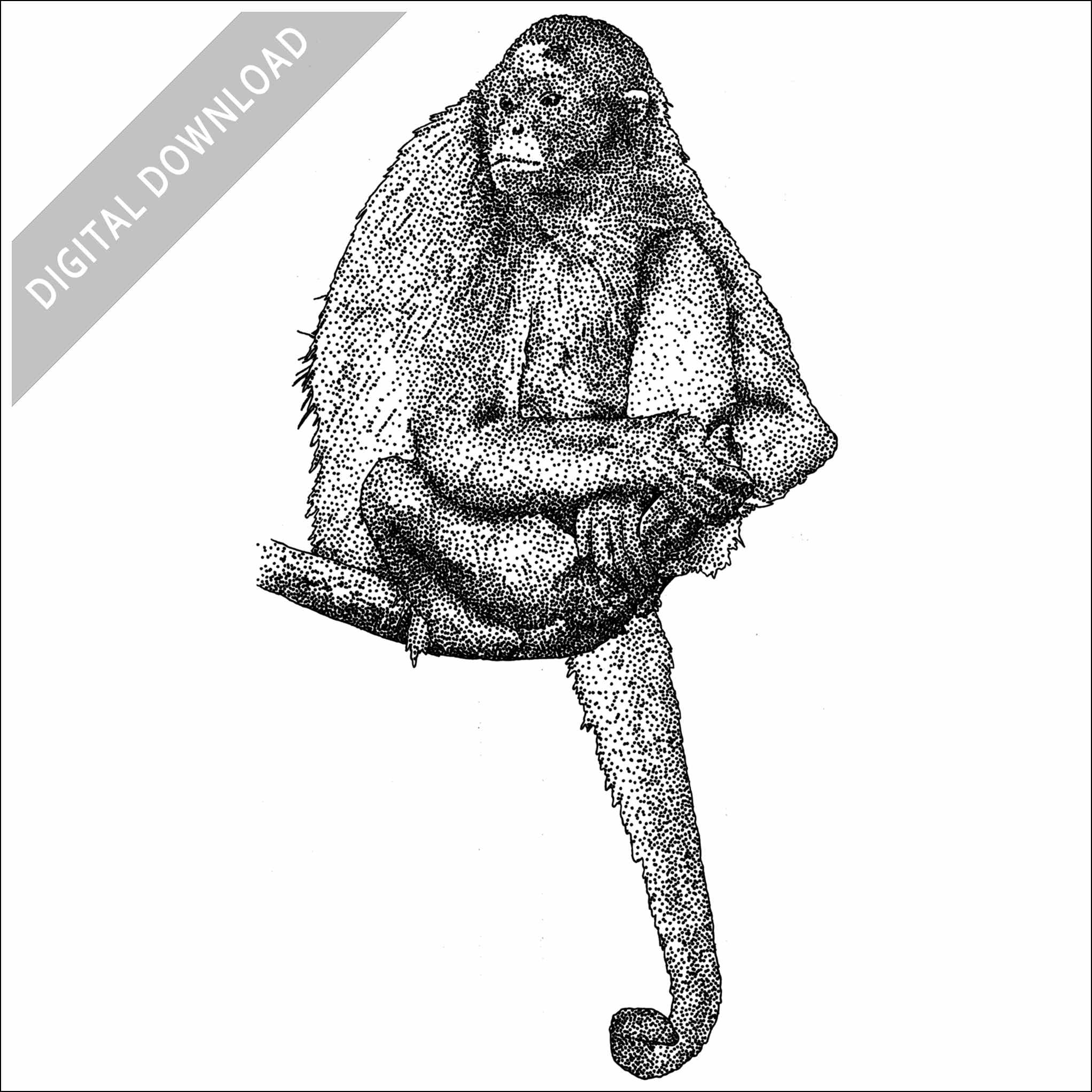 Stock art illustration of a Variegated Spider Monkey (Ateles hybridus.)Â Â The illustration is available in black and white or color for immediate download.