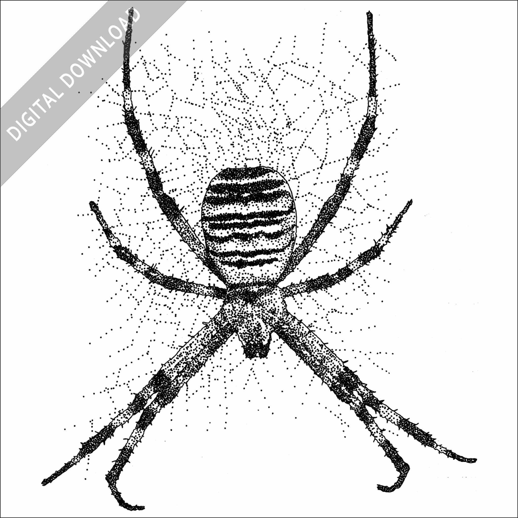 Stock art illustration of a Wasp Spider (Argiope bruennichi.)Â The illustration is available in black and white or color for immediate download.