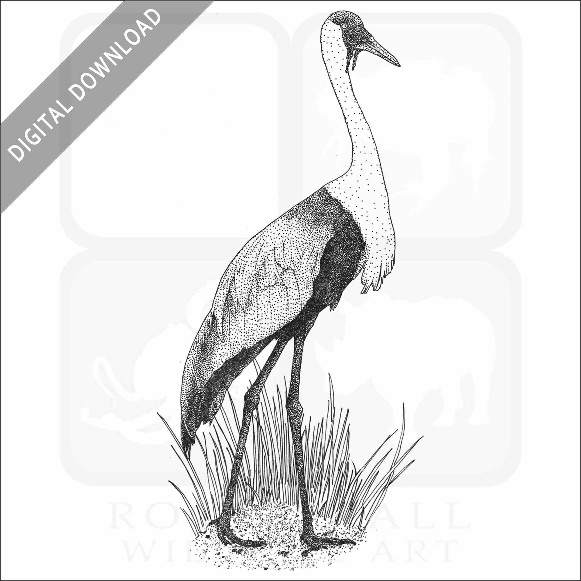 Stock art illustration of a Wattled Crane (Grus carunculata.)Â The illustration is available in black and white or color for immediate download.