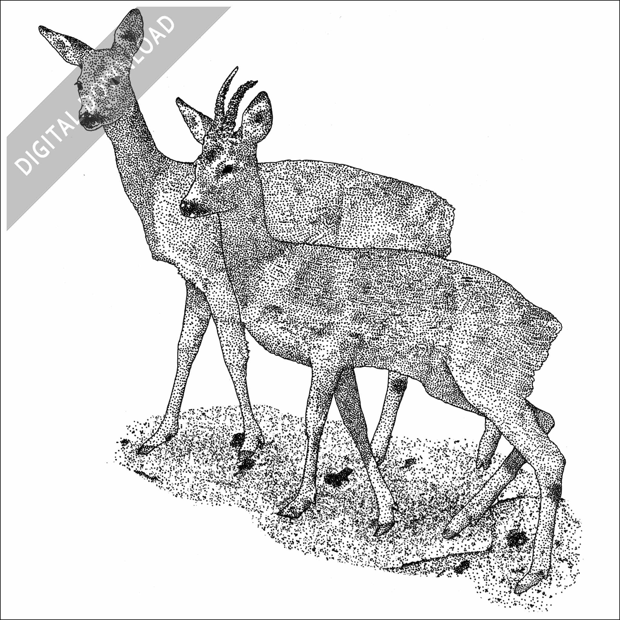 Stock art illustration of a pair of Western Roe Deer (Capreolus capreolus.) Â Â The illustration is available in black and white or color for immediate download.