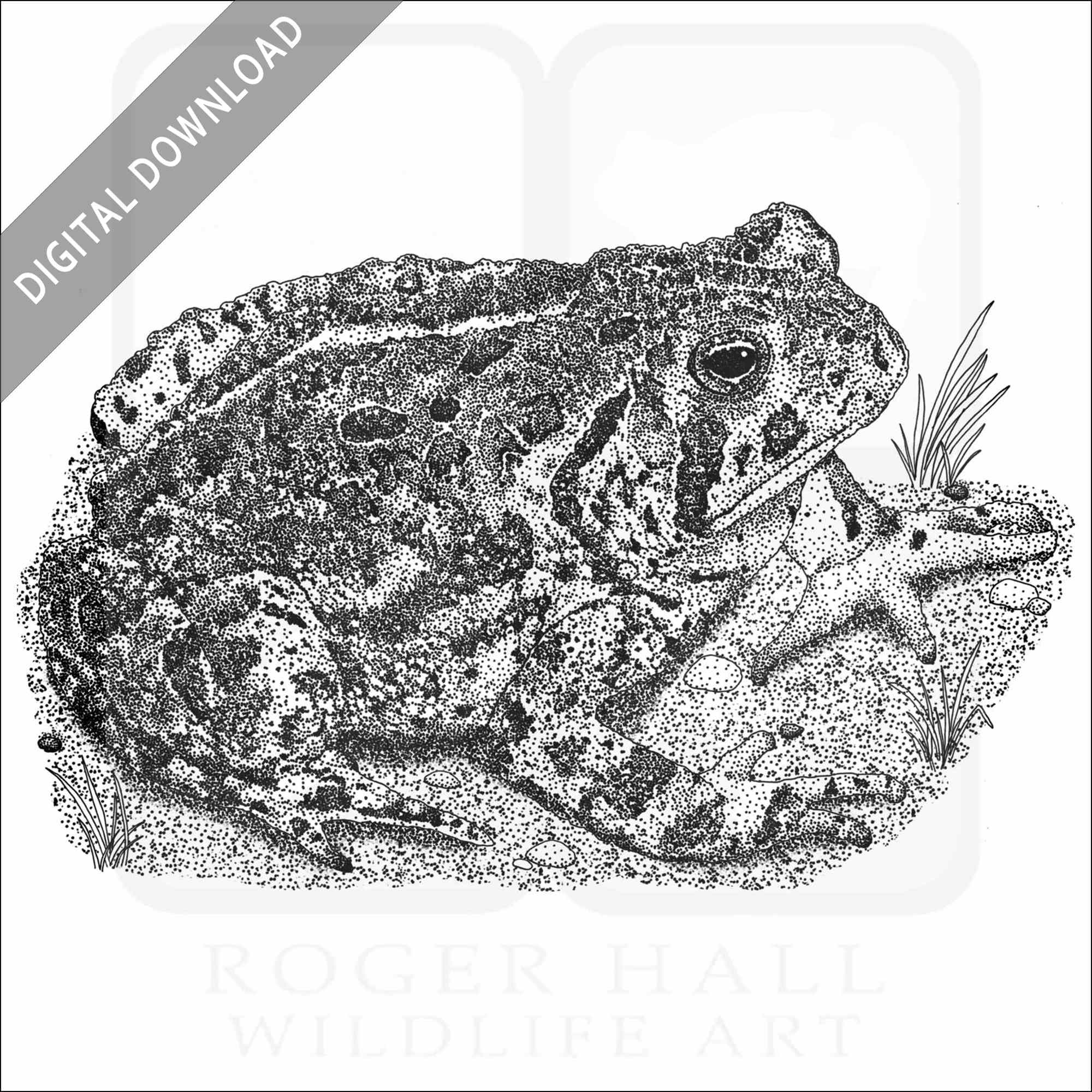 Stock art illustration of a Woodhouse’s Toad (Anaxyrus woodhousii.)Â The illustration is available in black and white or color for immediate download.
