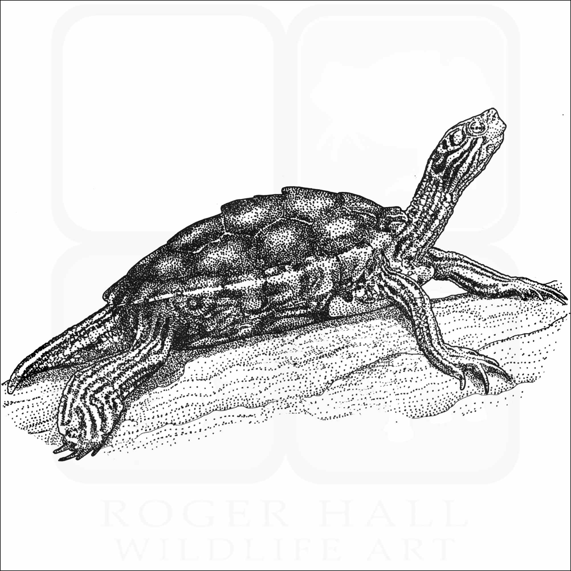 Stock Art Drawing of a Yellow-Blotched Map Turtle