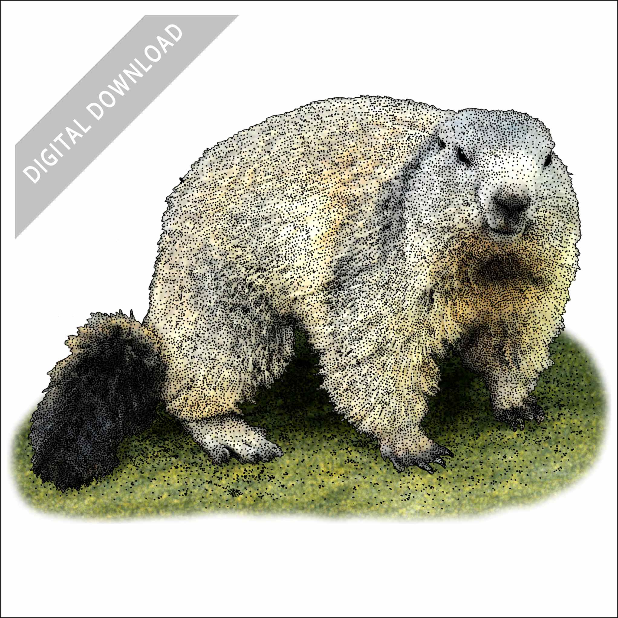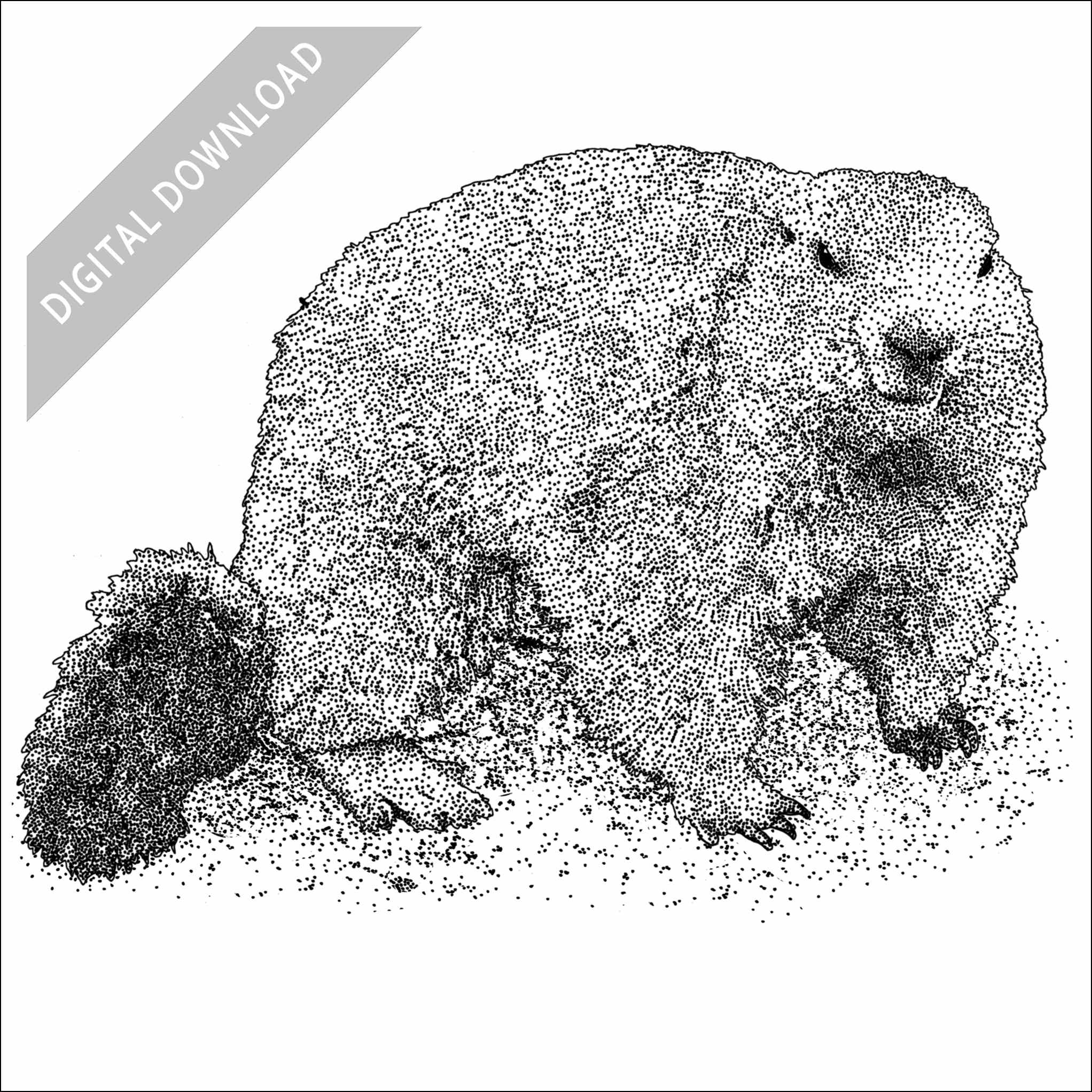 Stock art illustration of an Alpine Marmot (Marmota marmota.)Â Â The illustration is available in black and white or color for immediate download.