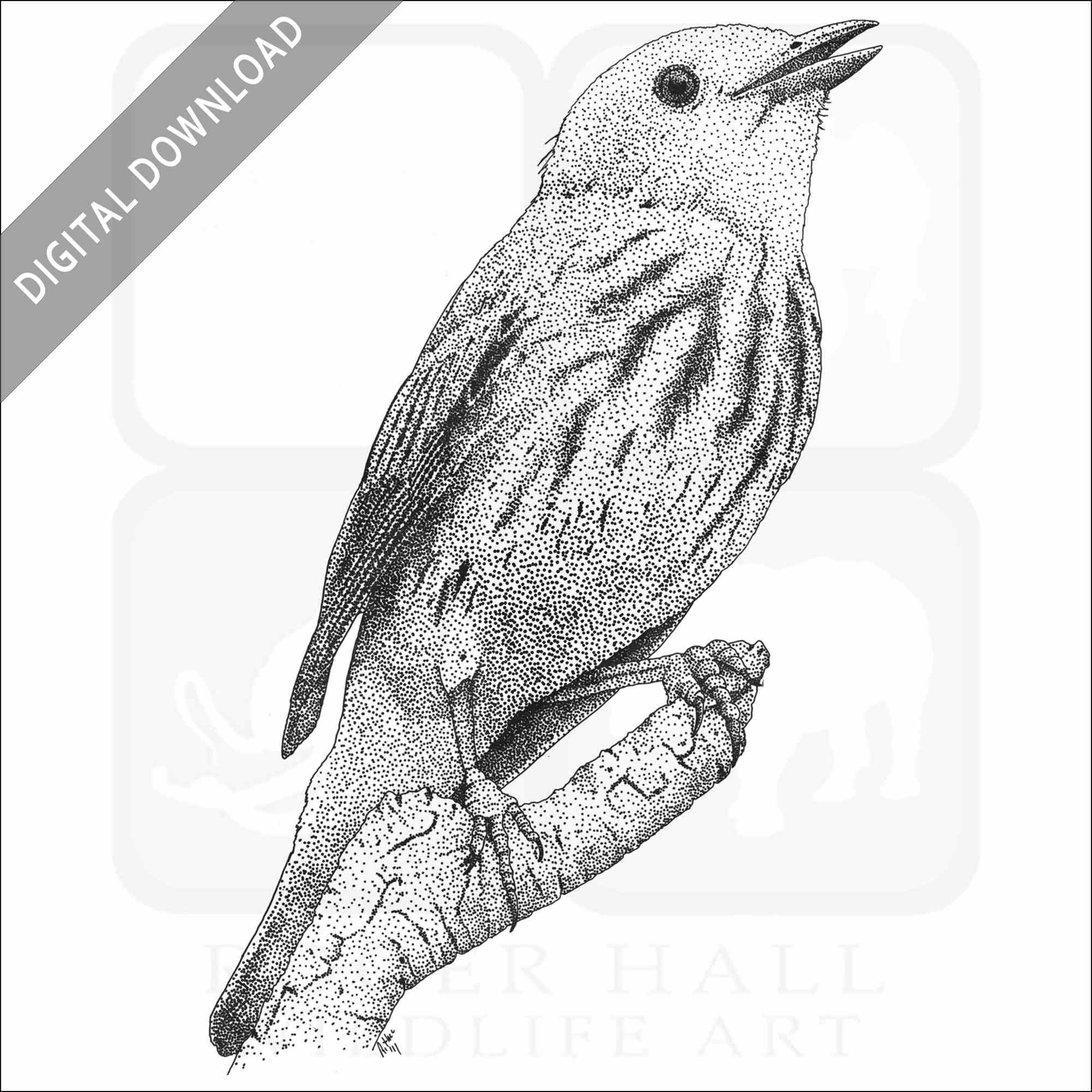 Stock art illustration of an American Yellow Warbler (Setophaga petechia.)Â The illustration is available in black and white or color for immediate download.