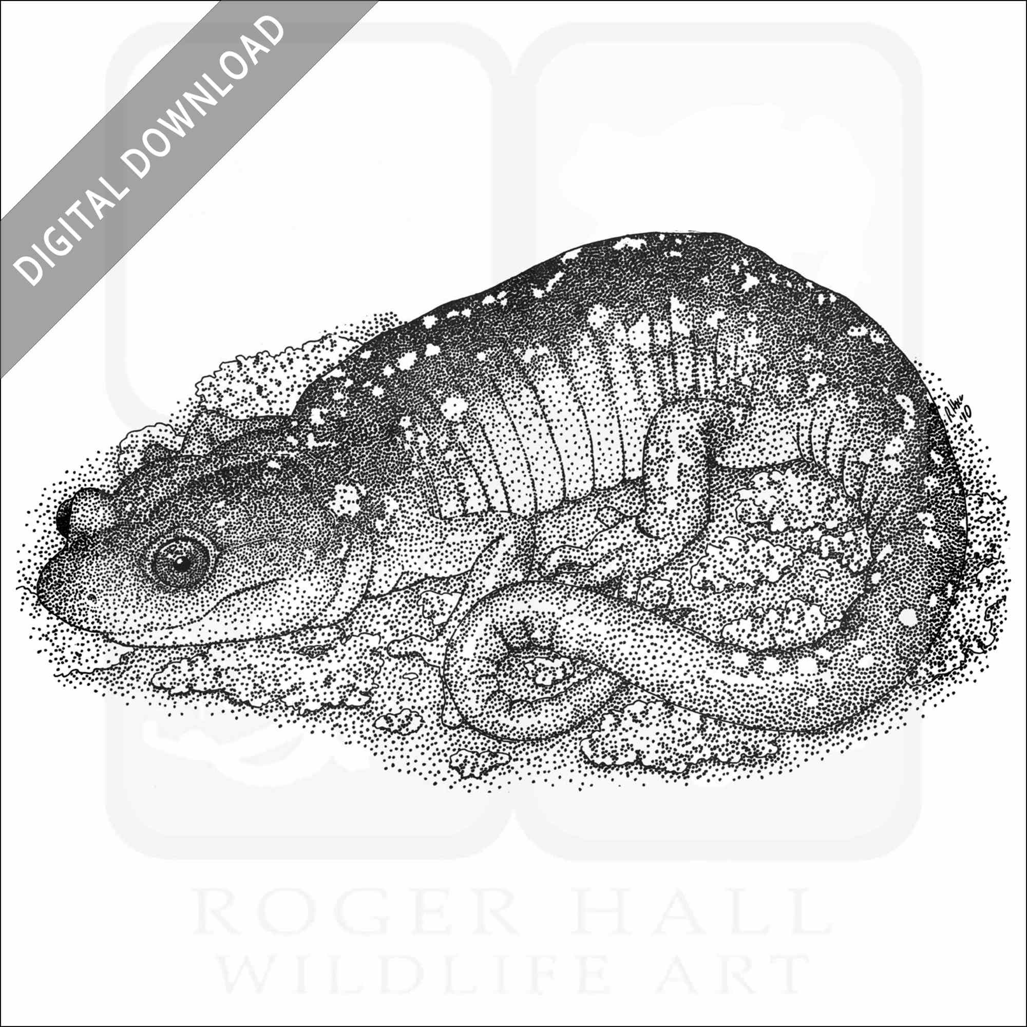 Stock art illustration of an Arboreal Salamander (Aneides lugubris.) The illustration is available in black and white or color for immediate download