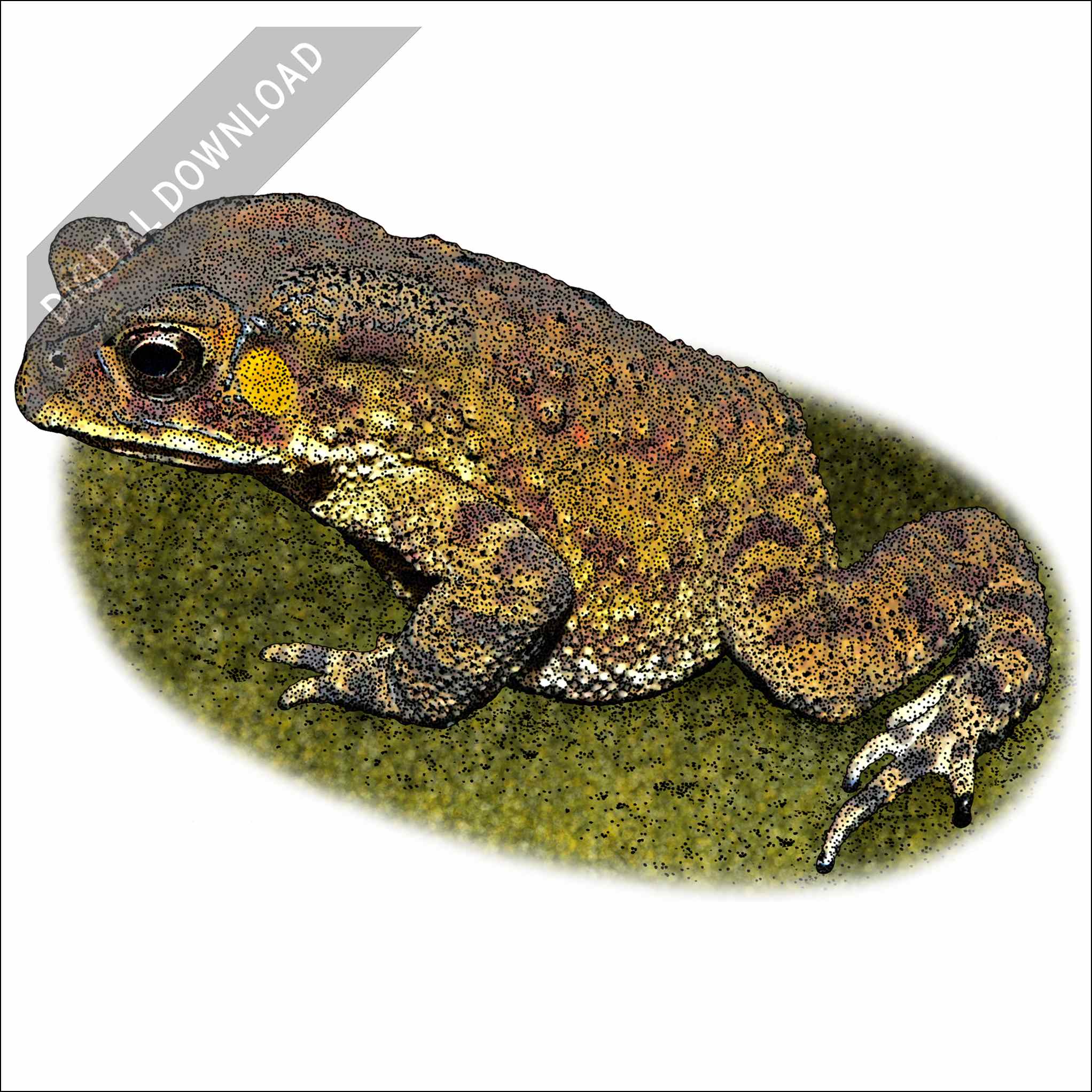 Stock art illustration of an Asian Common Toad (Duttaphrynus melanostictus.)Â The illustration is available in black and white or color for immediate download.