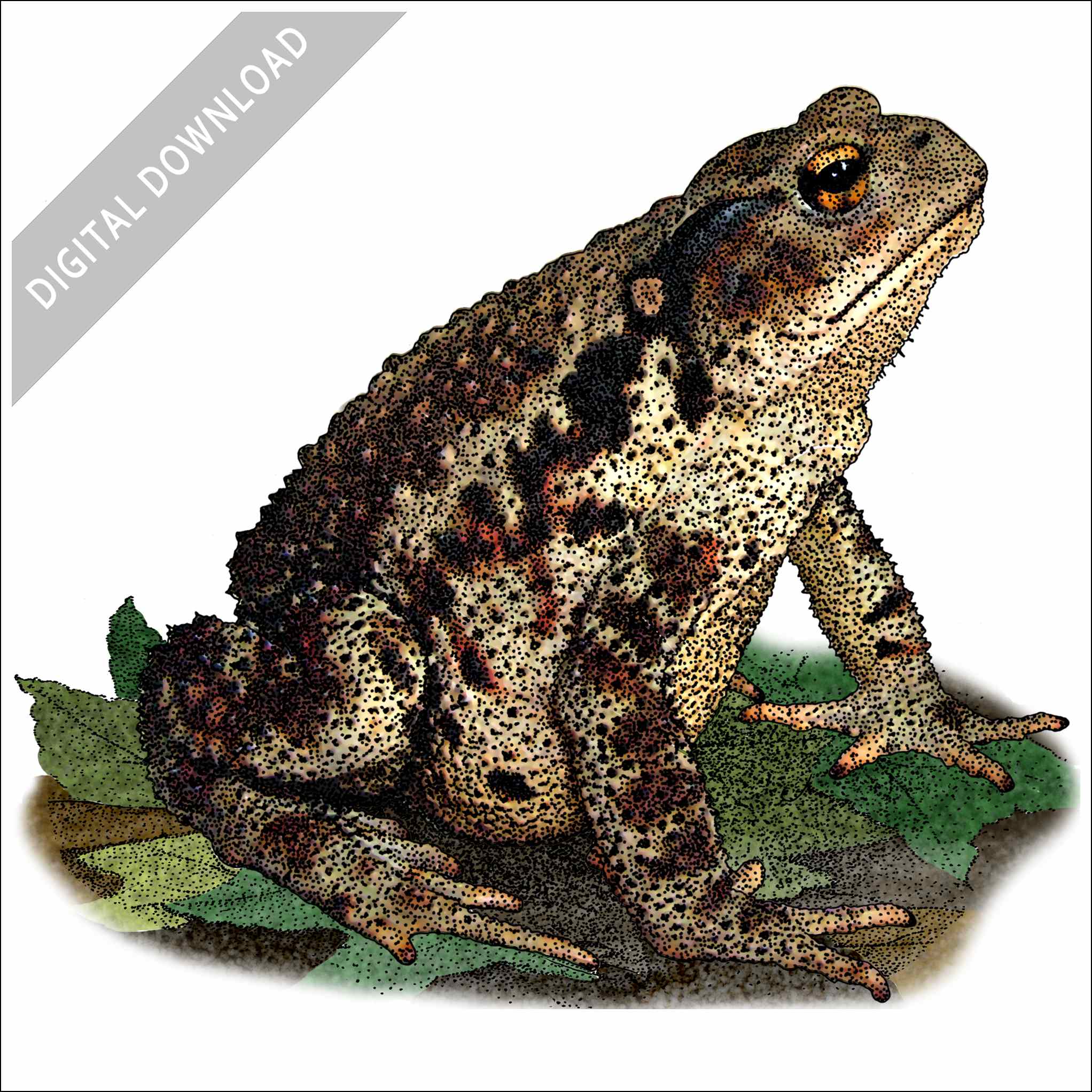Stock art illustration of an Asiatic Toad (Bufo gargarizans.)Â The illustration is available in black and white or color for immediate download.