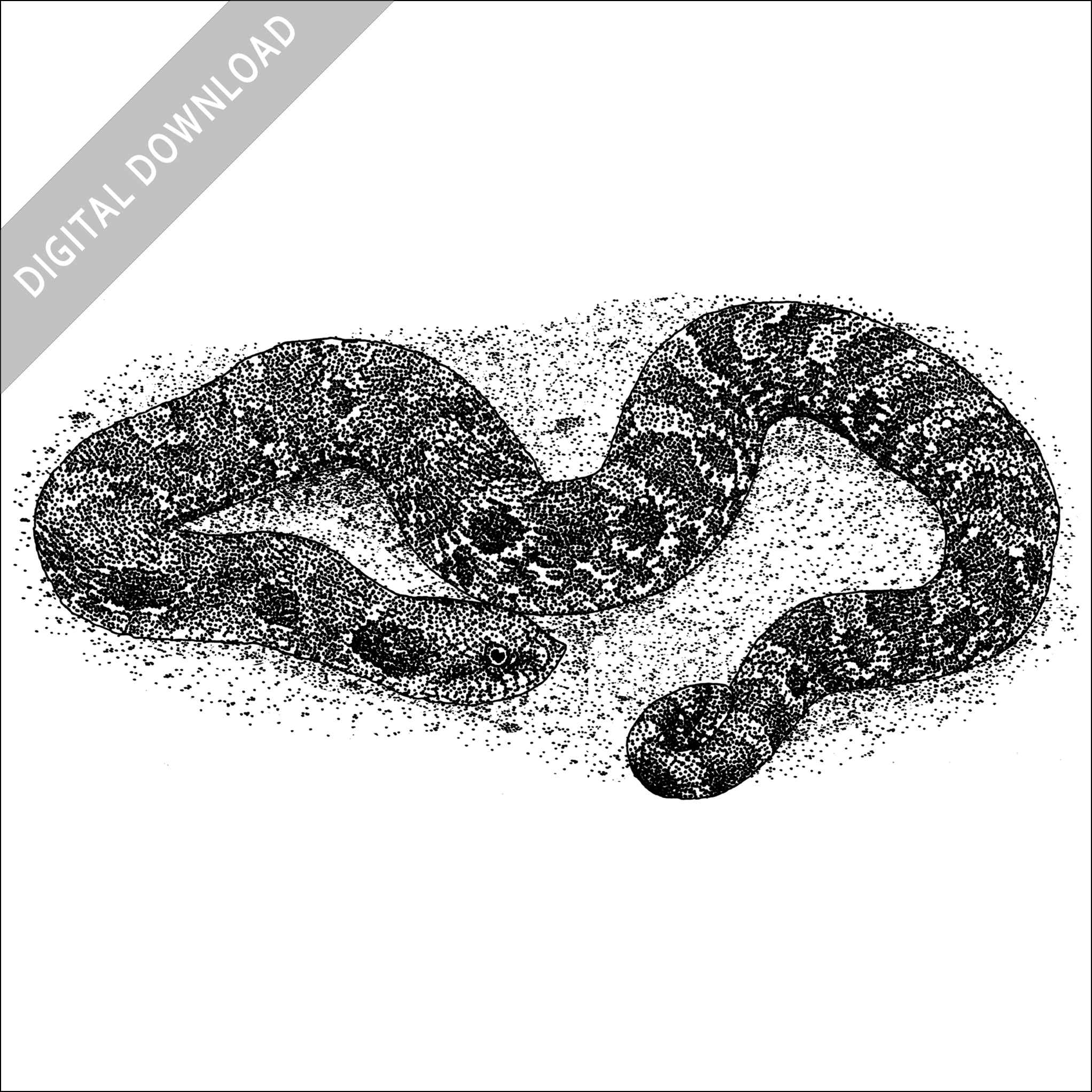 Stock art illustration of an Eastern Hognose Snake (Heterodon platirhinos.) The illustration is available in black and white or color for immediate download.