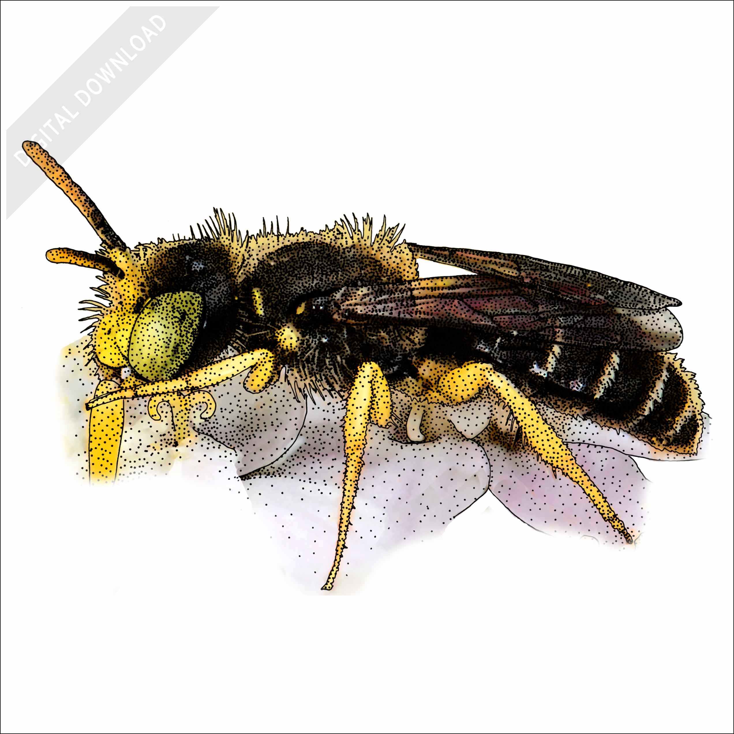 Stock art illustration of an Eastern Miner Bee (Calliopsis andreniformis.)Â Â The illustration is available in black and white or color for immediate download.