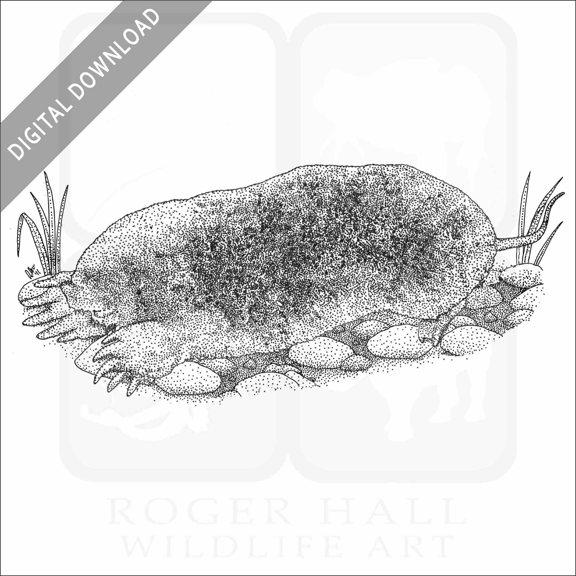 Stock art illustration of an Eastern Mole (Scalopus aquaticus.) The illustration is available in black and white or color for immediate download.