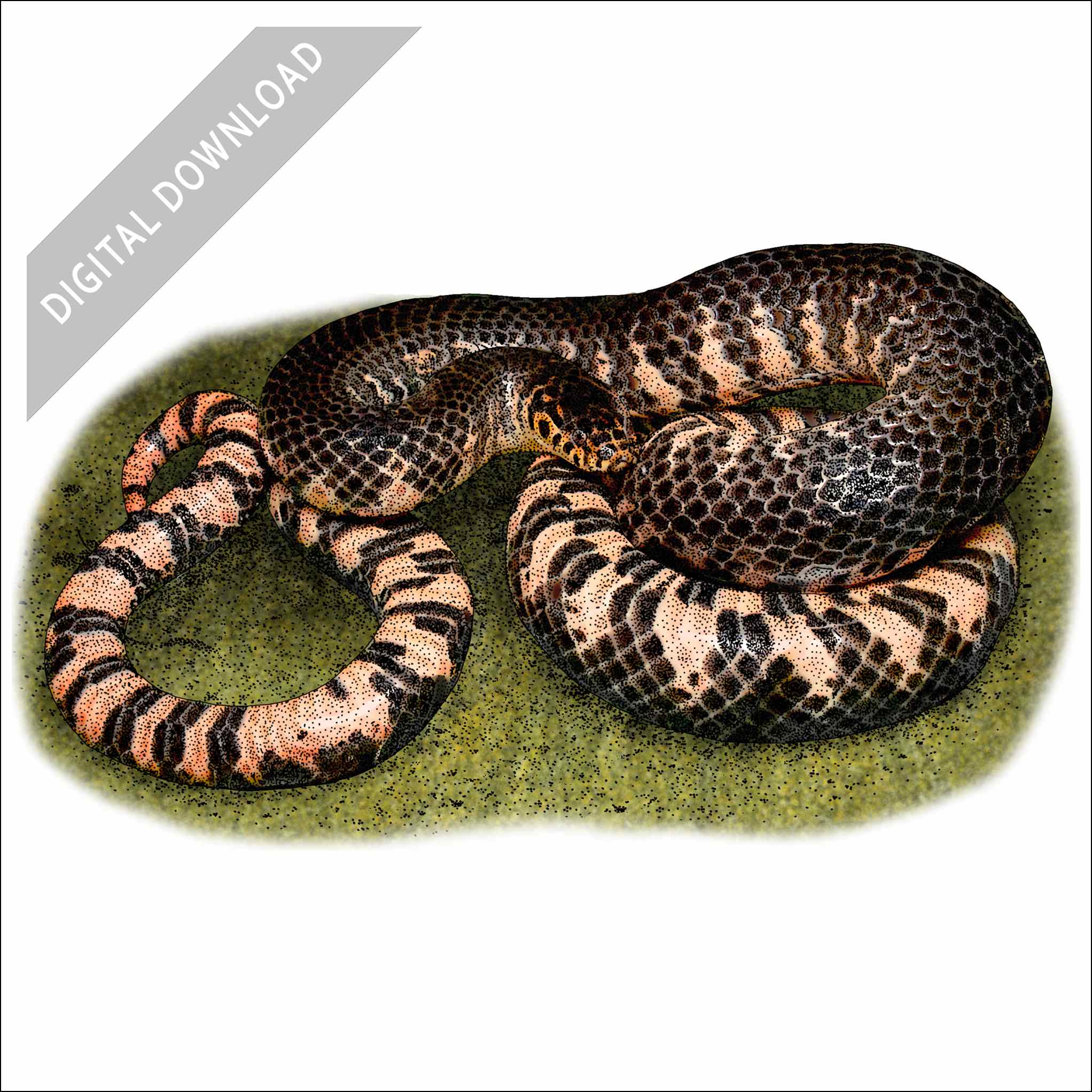 Stock art illustration of an Eastern Mud Snake (Farancia abacura abacura.)Â The illustration is available in black and white or color for immediate download.