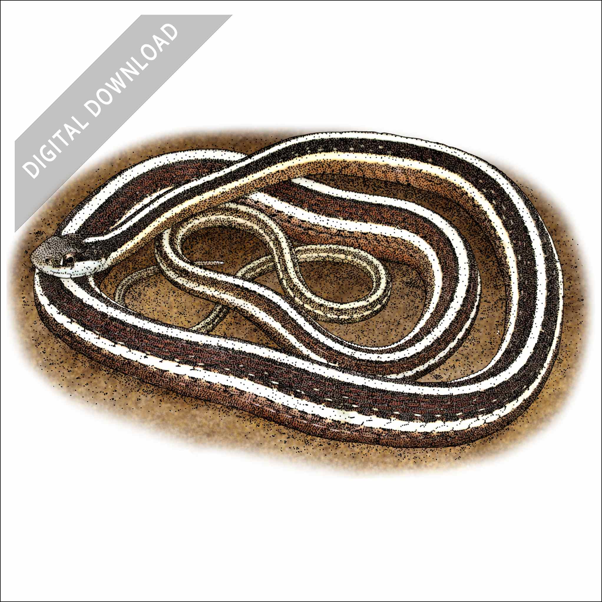 Stock art illustration of an Eastern Ribbonsnake (Thamnophis sauritus.) The illustration is available in black and white or color for immediate download.