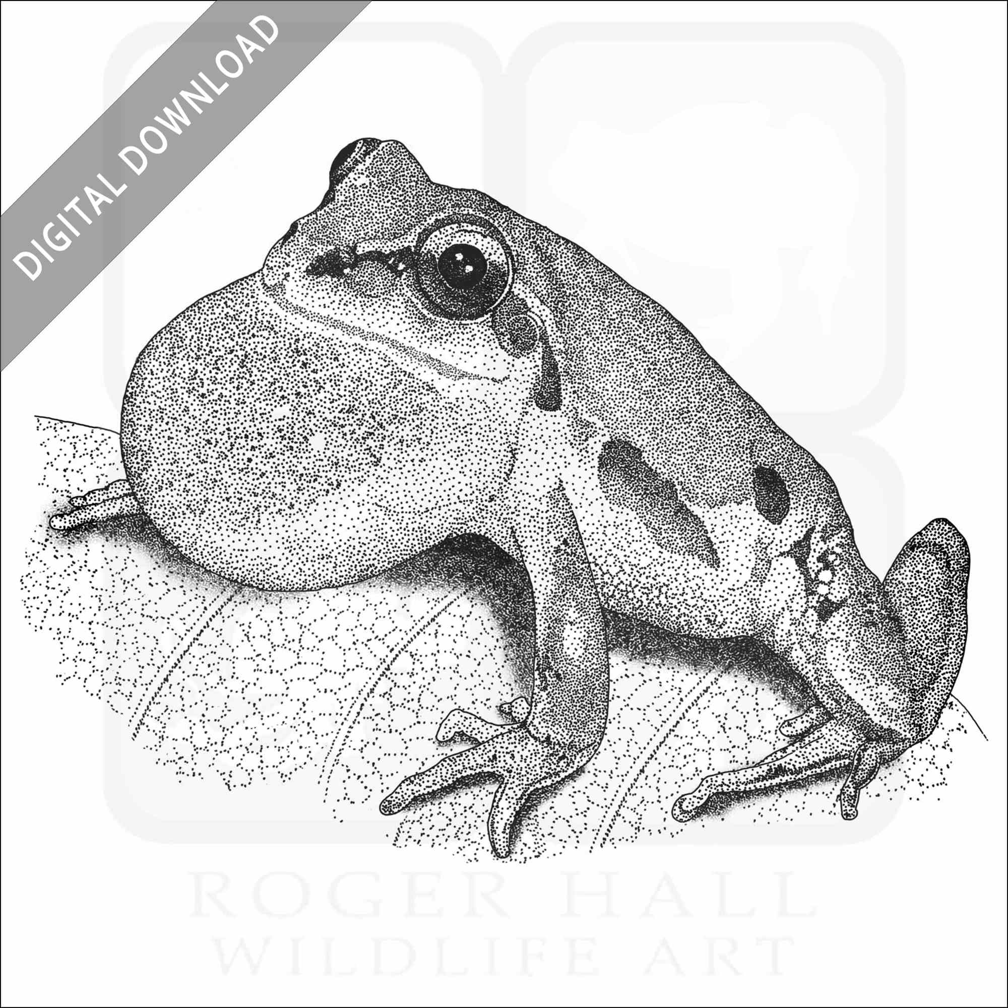 Stock art illustration of an Ornate Chorus Frog (Pseudacris ornata.) The illustration is available in black and white or color for immediate download.