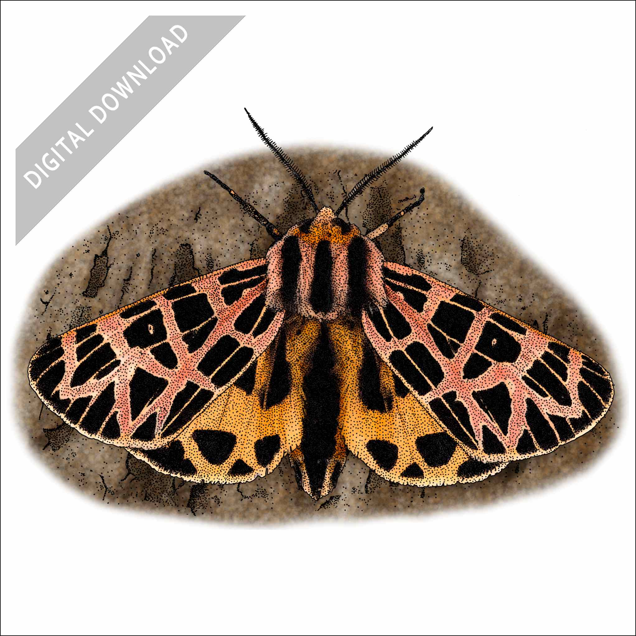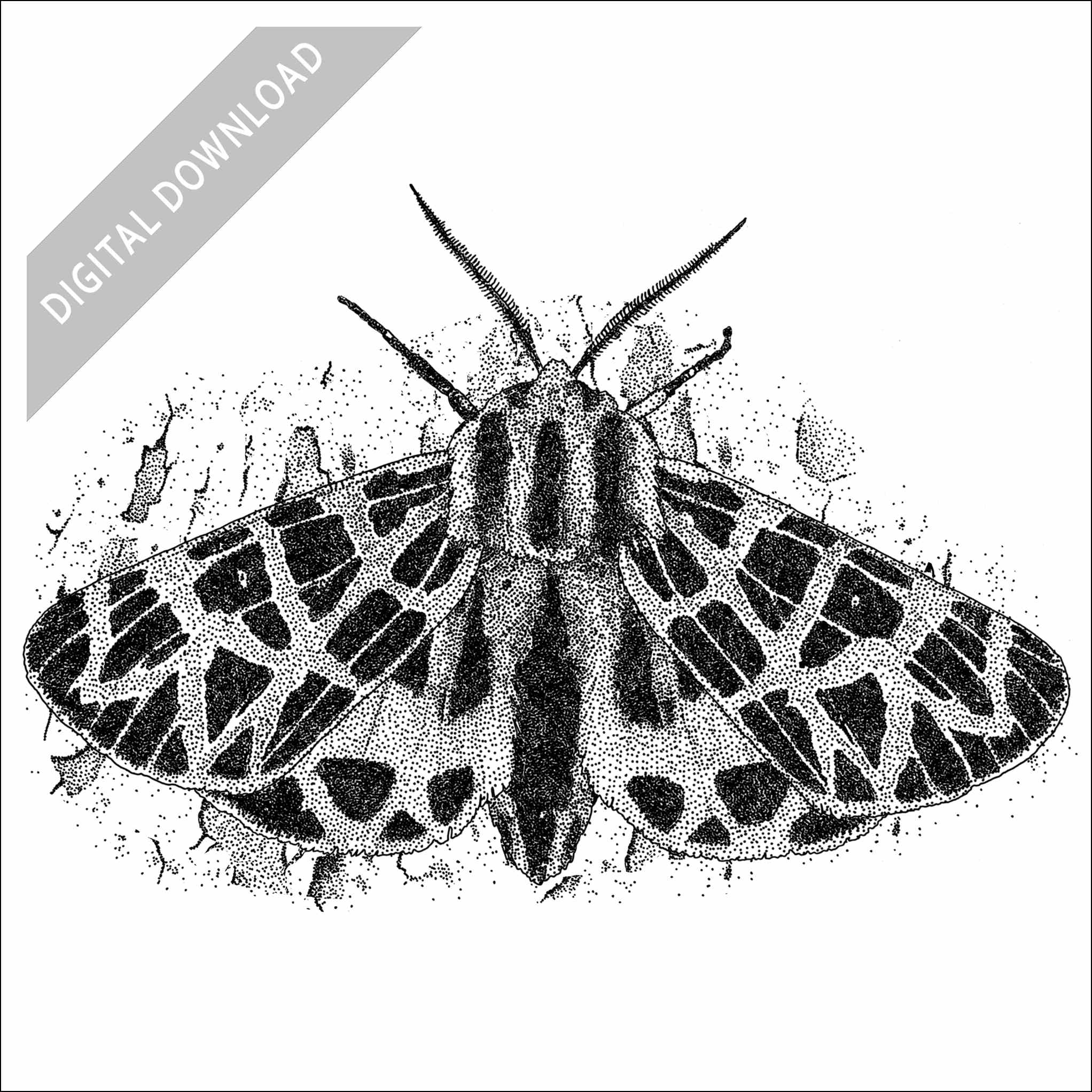 Stock art illustration of an Ornate Tiger Moth (Apantesis ornata.)Â The illustration is available in black and white or color for immediate download.