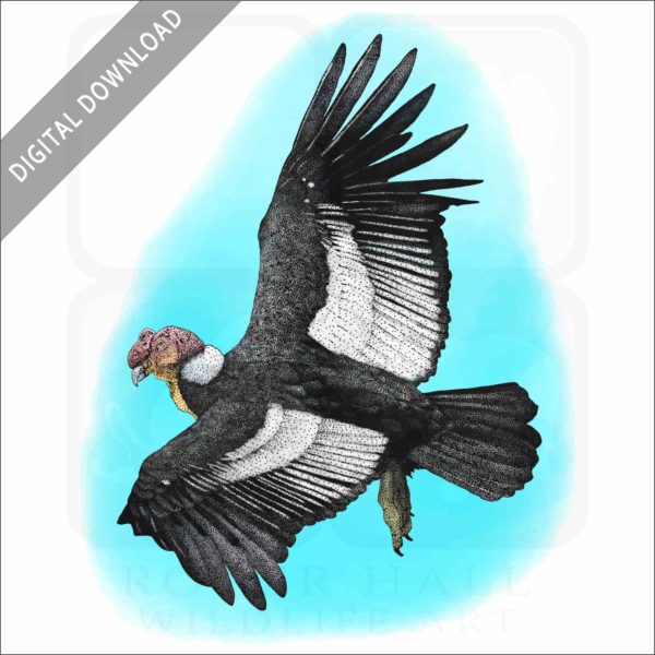Stock art illustration of an Andean Condor (Vultur gryphus.) The illustration is available in black and white or color for immediate download