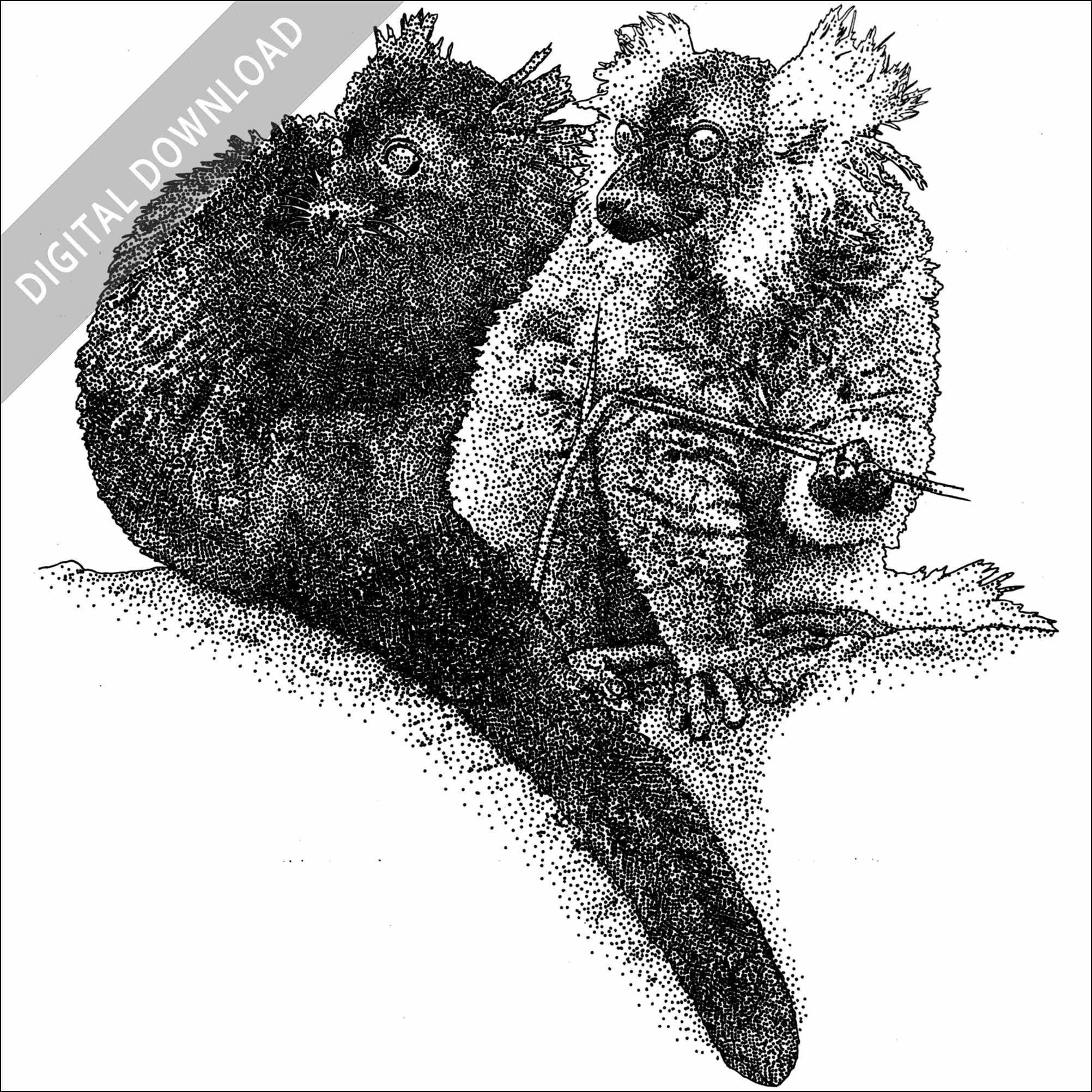 Stock art illustration of a pair of male and female Black Lemurs (Eulemur macaco.)Â The illustration is available in black and white or color for immediate download.