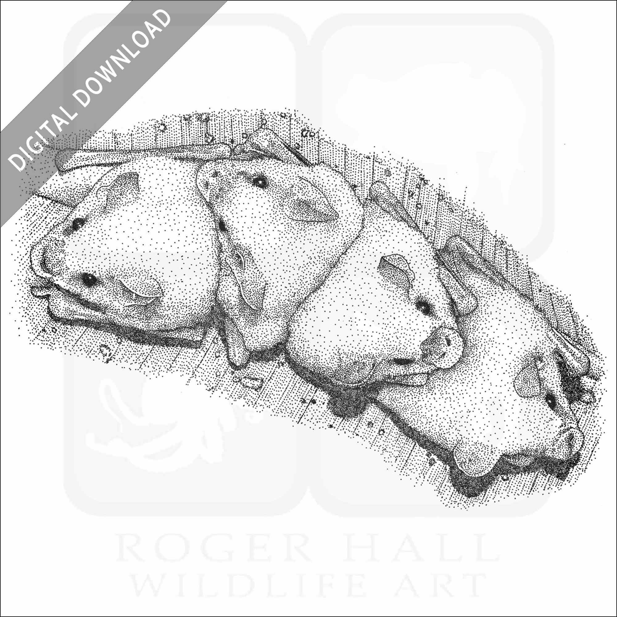 Stock art illustration of a small group of Honduran White Bats (Ectophylla alba.)Â The illustration is available in black and white or color for immediate download.