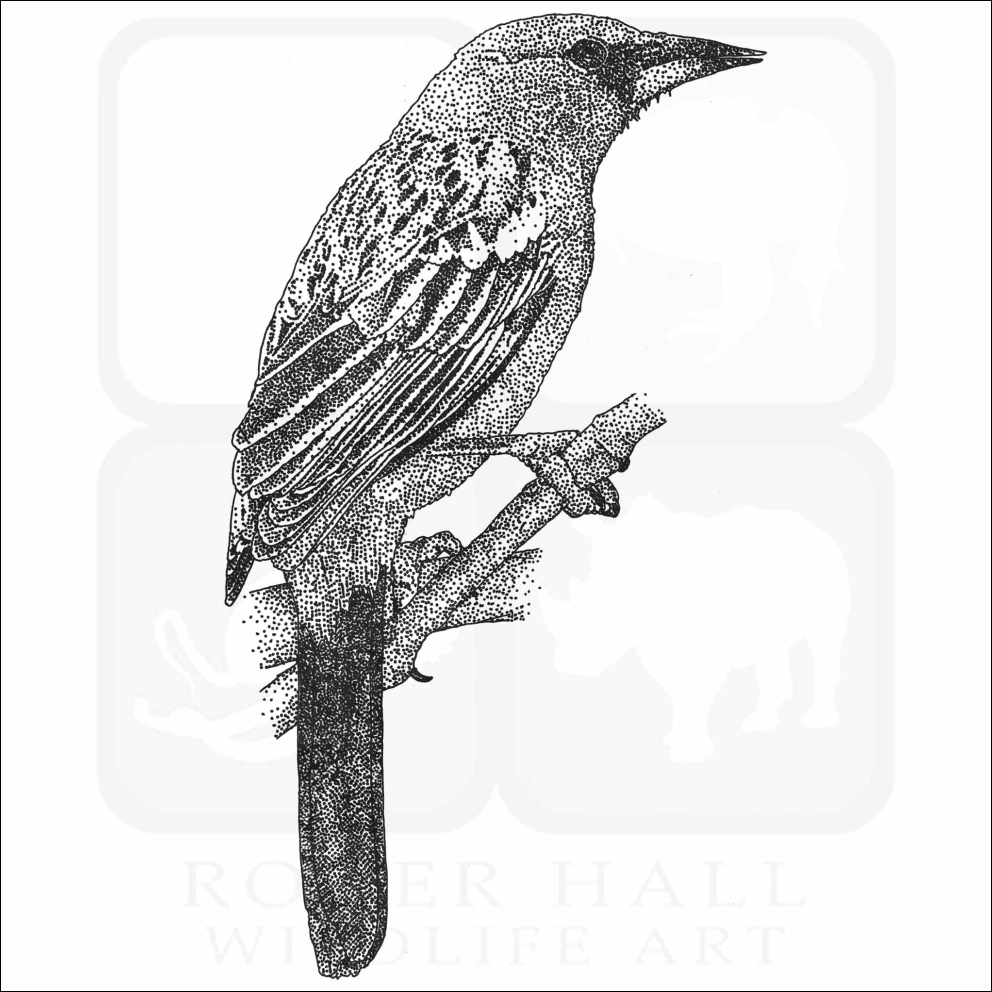 Fine art illustration of a Streak-Backed Oriole (Icterus pustulatus.) The illustration is available in black and white or color.