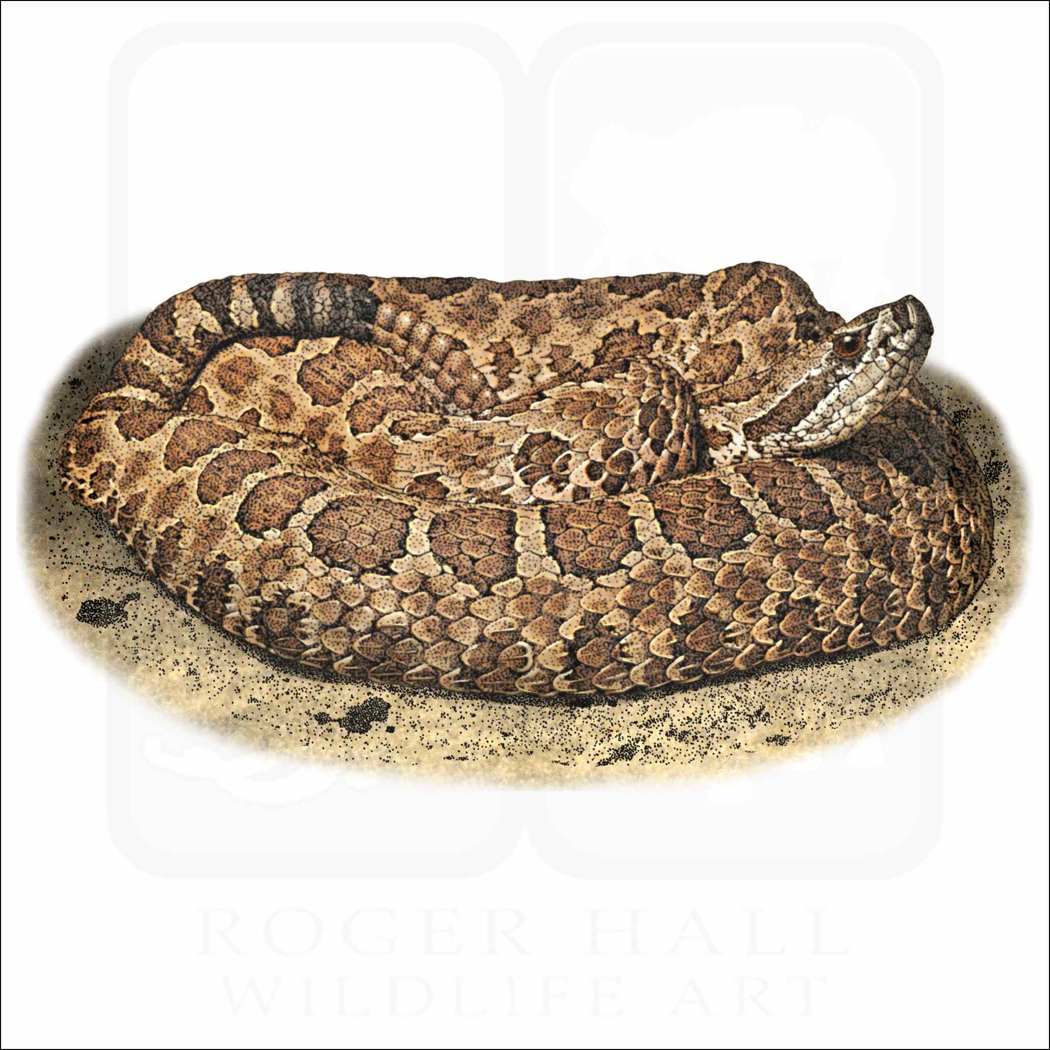 Tags: animal, animal renderings, drawing, fine art print, illustration, picture, pit viper, realistic drawing, reptile, scientific illustration, Sistrurus catenatus tergeminus, sketch, venomous, WESTERN MASSASAUGA, wildlife art