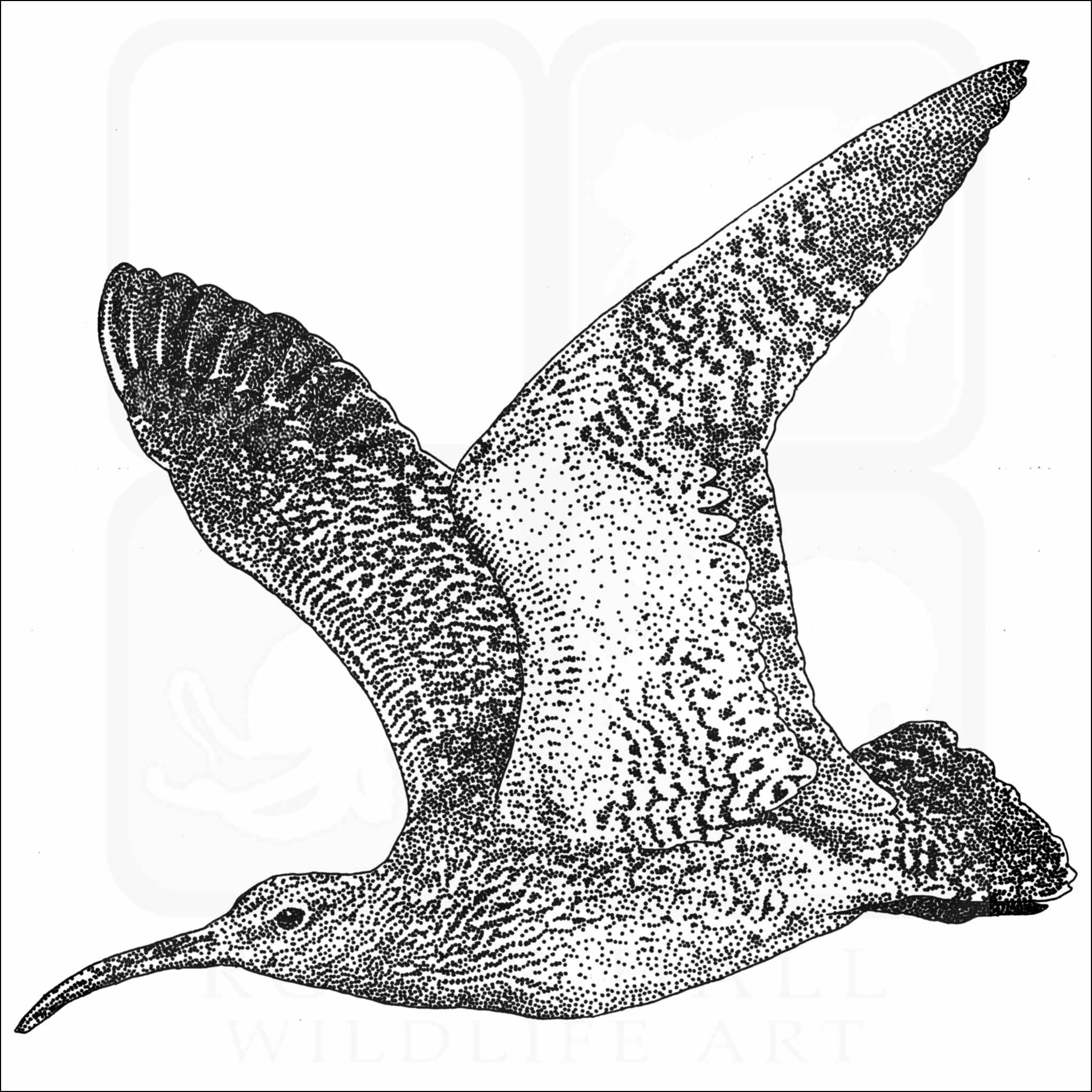 Fine art illustration of a Whimbrel (Numenius phaeopus.) The illustration is available in black and white or color.
